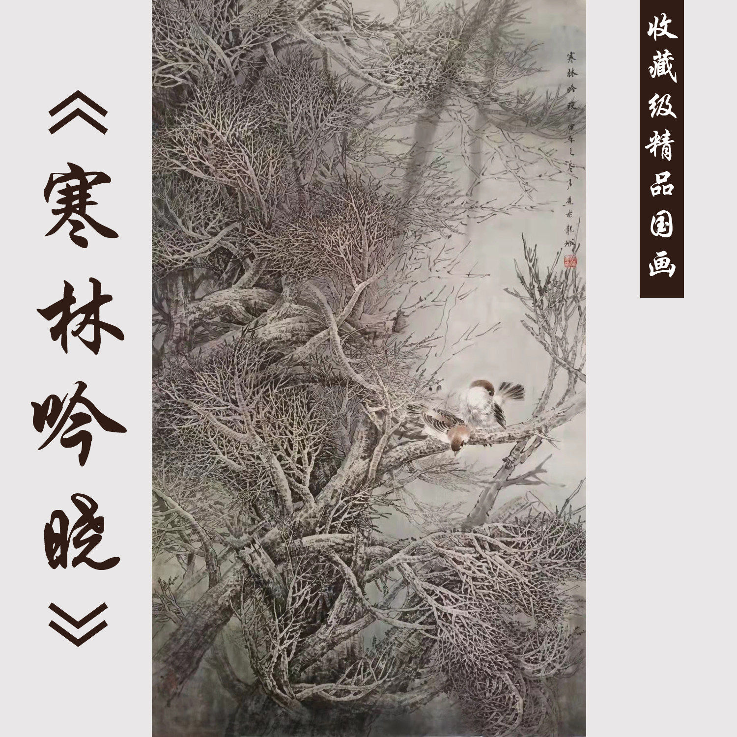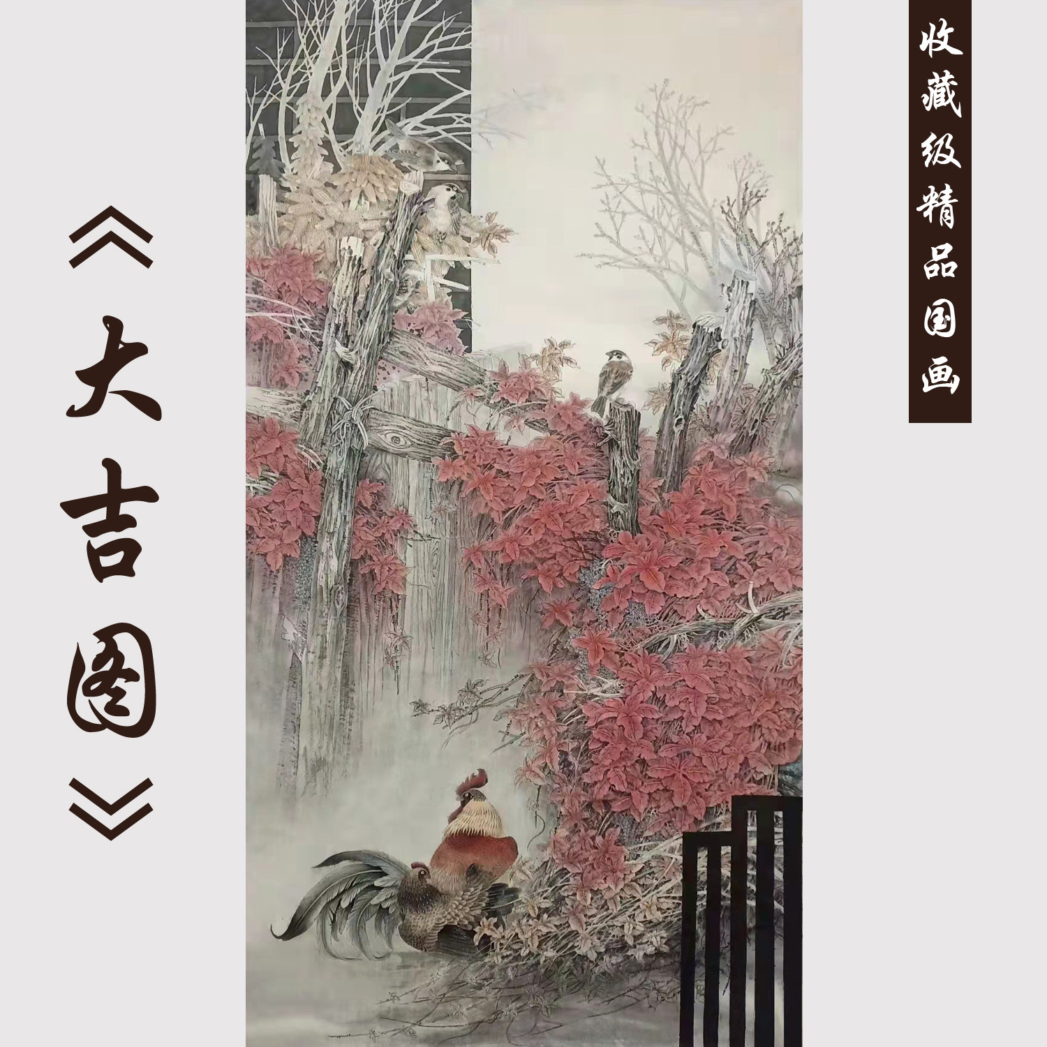 Famous hand-painted authentic Chinese painting flower and bird painting living room office porch hotel aisle vertical hanging painting Chinese style with frame