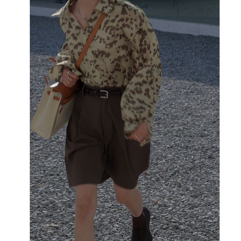 Large size waist a high waist a character suit shorts women Summer fat Hip Pear Shape Slim Fit Slim Brown 50% Pants Broadlegged
