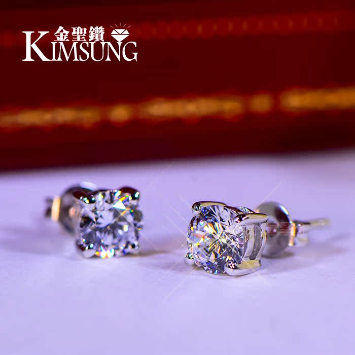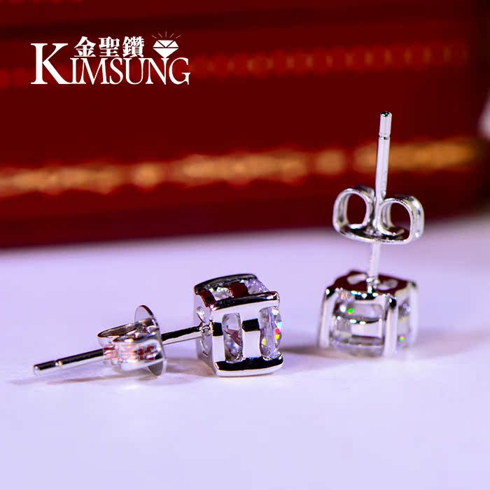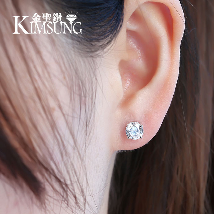 Classic four paws mosanstone earshot male and female 1 carat emulated diamond 925 pure silver plated platinum Korean version couple earrings