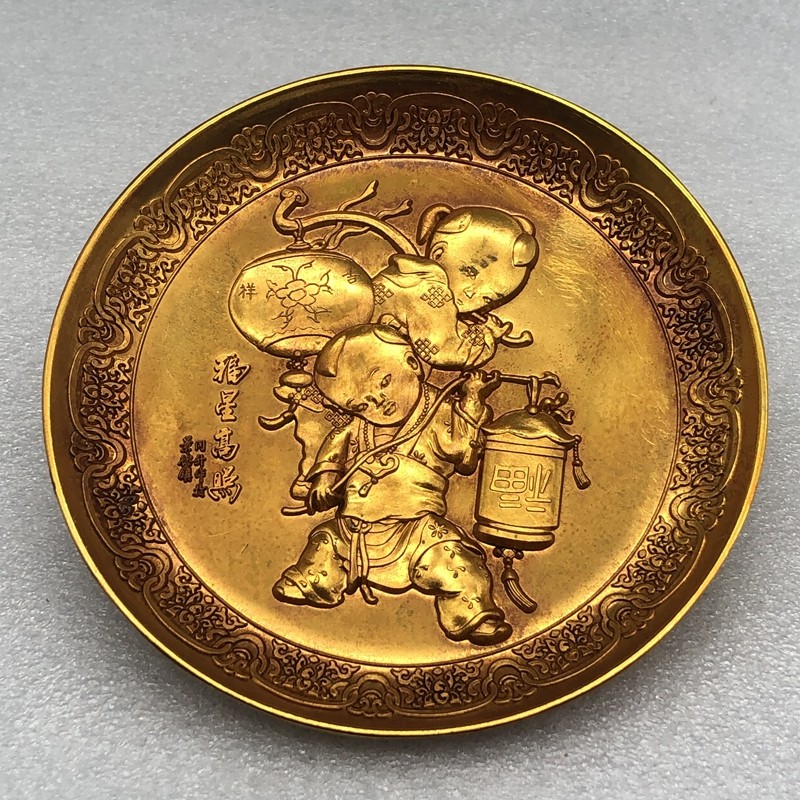 Ancient Antique Antique Imitation Ancient Dry Lung year Fosun high photos Golden Plate Sauces Home Craftsmanship Pendulum