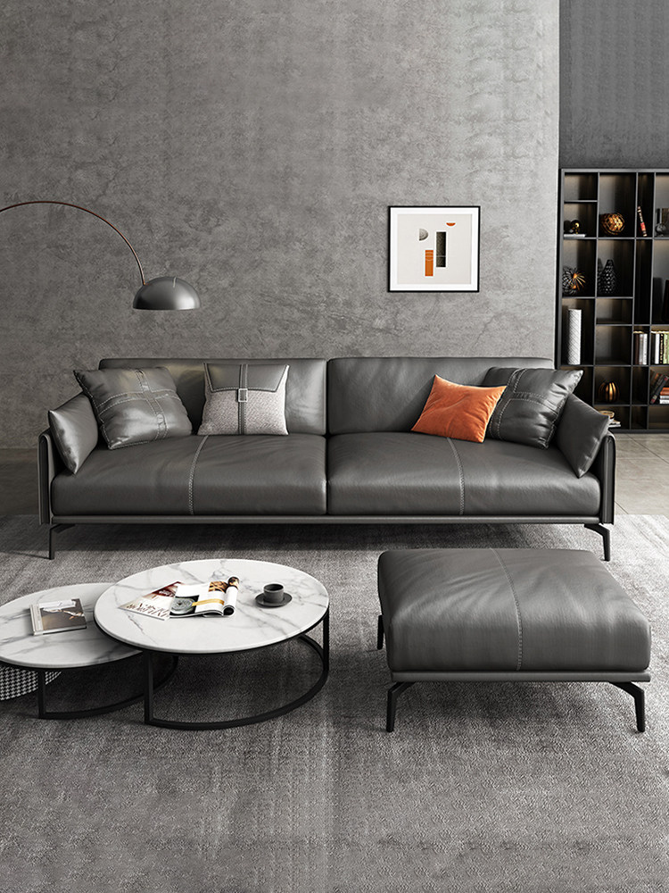 Italian leather office sofa coffee table combination Nordic simple modern business reception room gray three-person reception
