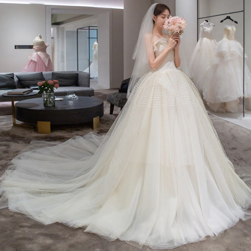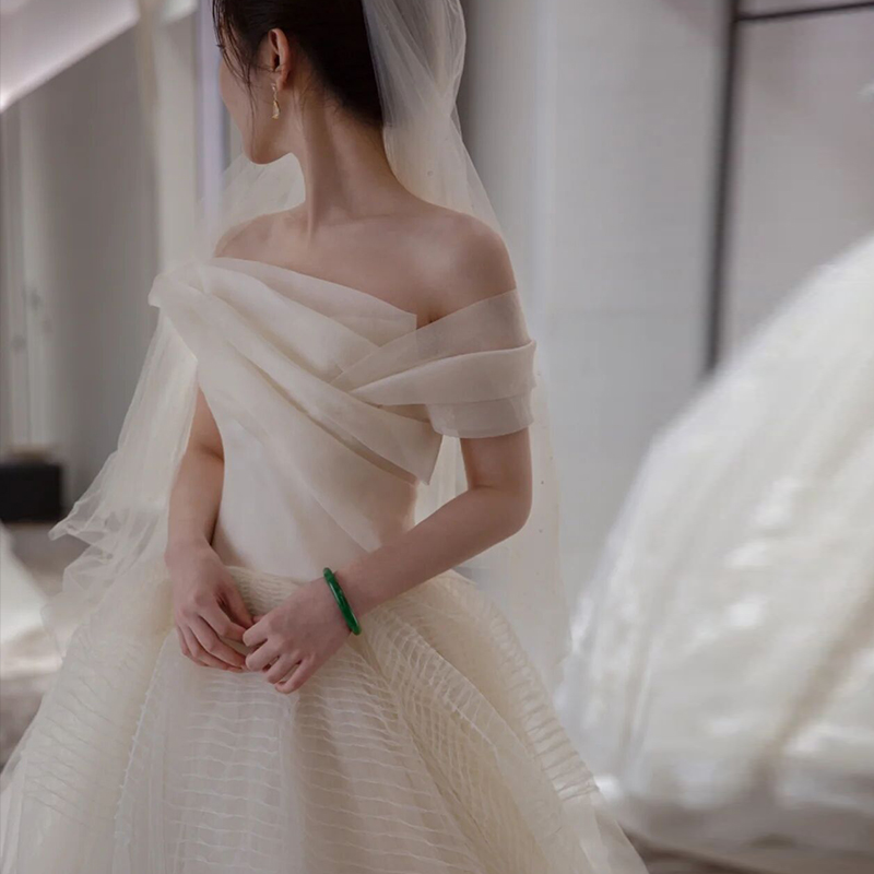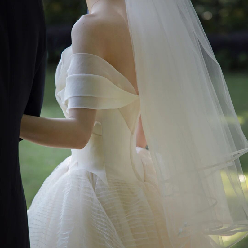 Super Fairy shoulder wedding dress 2023 new bride high waist covering belly outdoor dress high luxury welcome suit