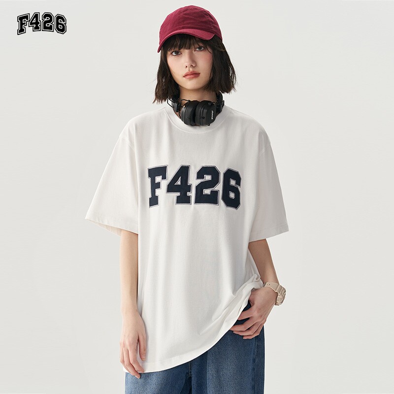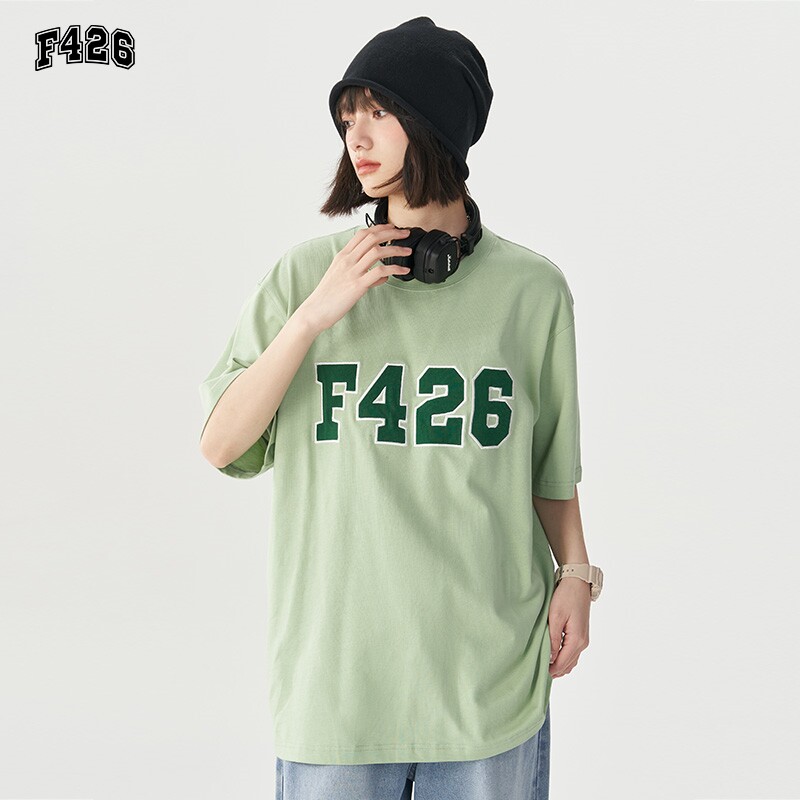 (F426 Official Store) Guochao couple street hip-hop loose six-color big LOGO patch embroidered short-sleeved summer