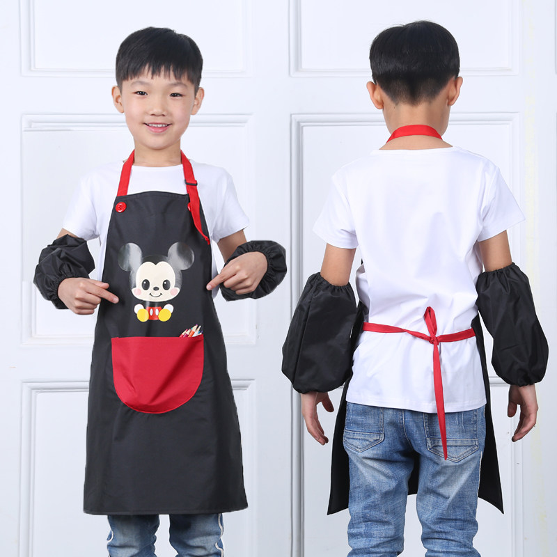 Black Red Pocket Kids Waterproof Apron *Mickey Mouse