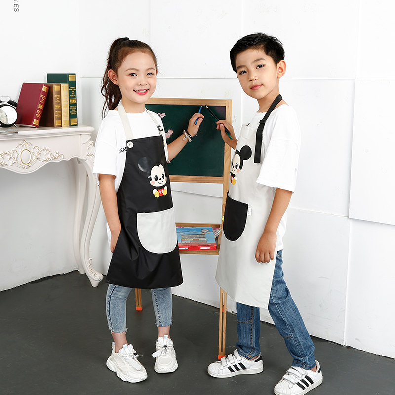 Black Gray Pocket Kids Waterproof Apron *Mickey Mouse
