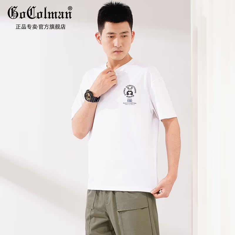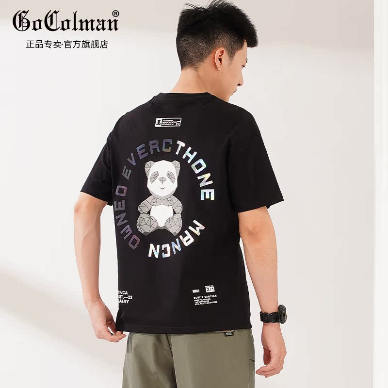 GoColman summer thin round neck short-sleeved men's 2022 new ins national tide panda printing bottoming cotton T-shirt