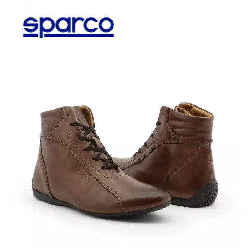 Genuine leather Italy SPARCO Fire racing shoes Men and women Auto FIA certified retro riding Mormon locomotive boots