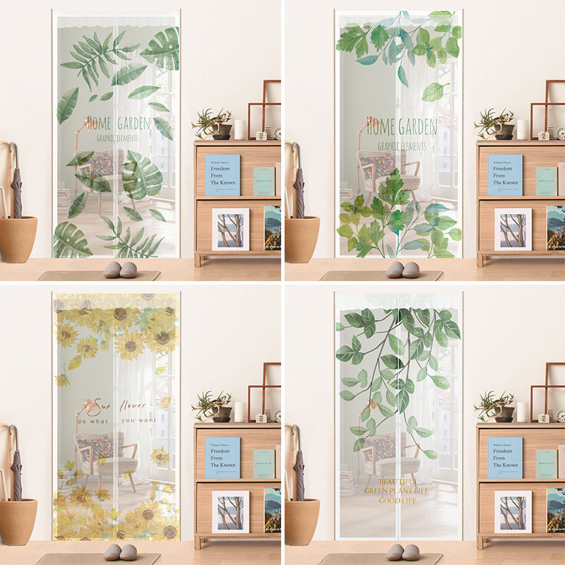 Anti-mosquito door curtain Velcro new full magnet strip free punching self-priming summer green leaf anti-fly screen window partition screen curtain