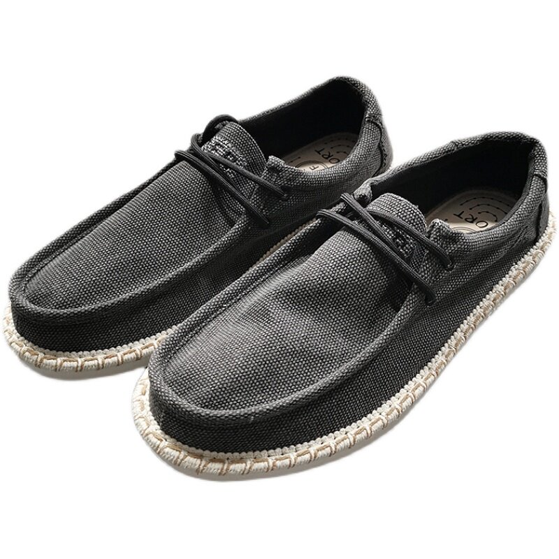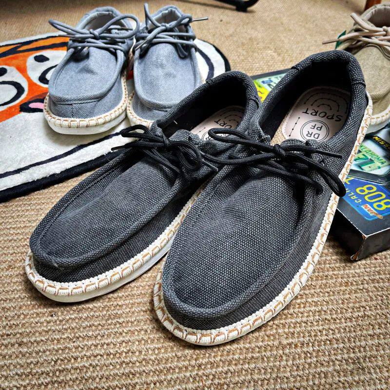 Soft and comfortable European line 39 99 knife ~ spring summer men's breathable hemp material rubber large base light and low helping casual shoes