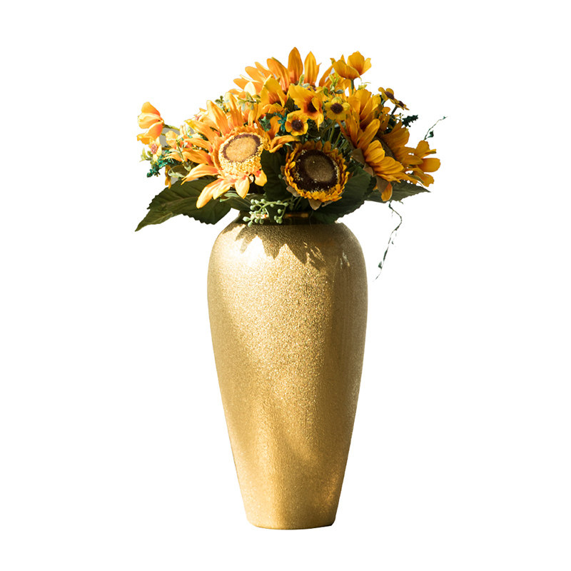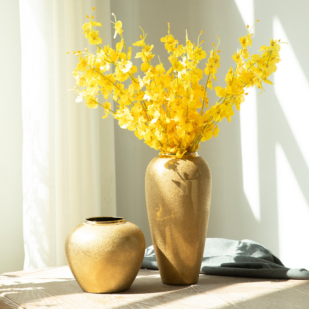 Jingdezhen light luxury modern minimalist gold-plated ceramic vase with dry flower simulation flower hydroponic table top hotel decoration