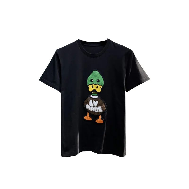 Fire Letter Duck Embroidery Short Sleeve Male Spring Summer New Round Collar Pure Cotton Loose Casual T-shirt Trend ins8678