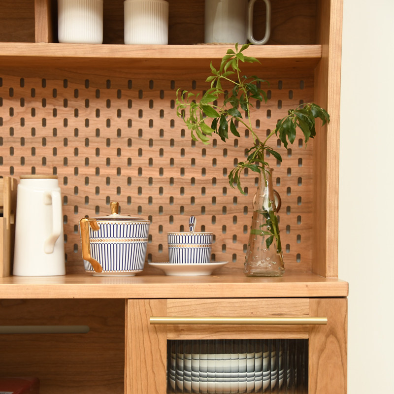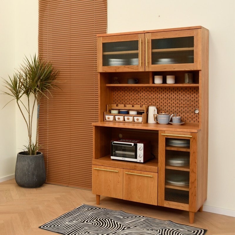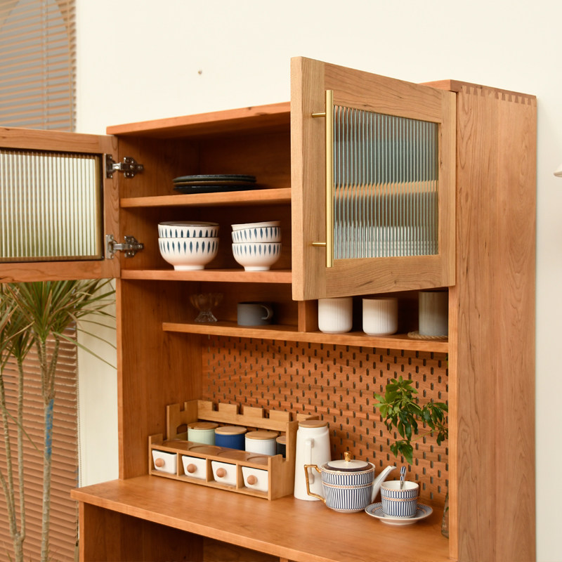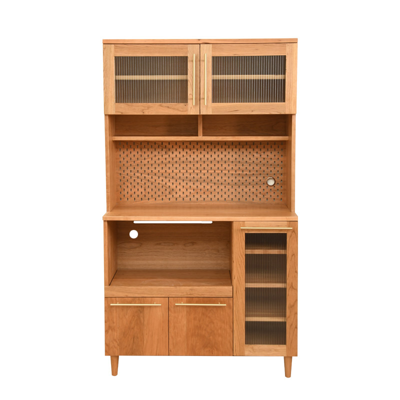 Nordic modern minimalist cherry wood sideboard small apartment solid wood kitchen locker tea cabinet hole board cupboard