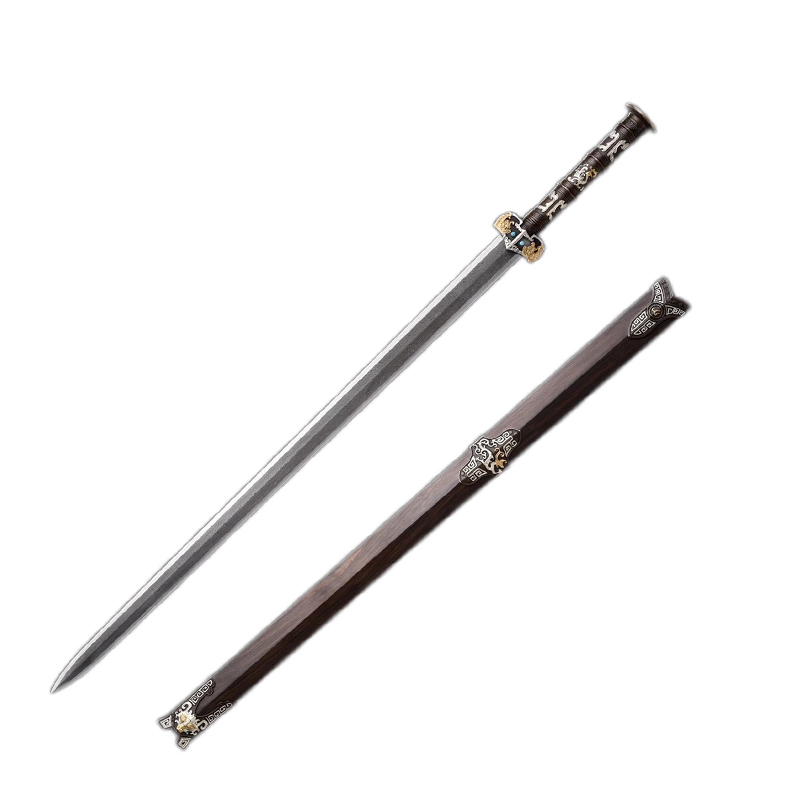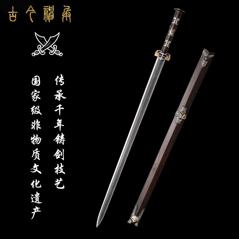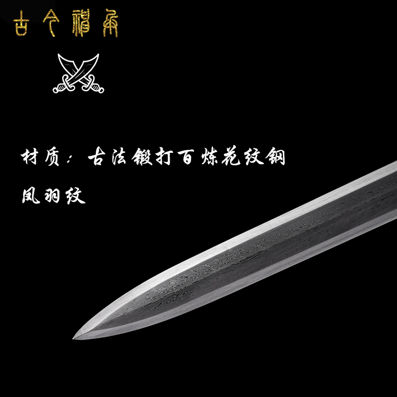 Longquan ancient and modern sword Han Qin Fengyun sword one hundred refining pattern steel phoenix feather pattern eight-sided Han sword long sword not edged