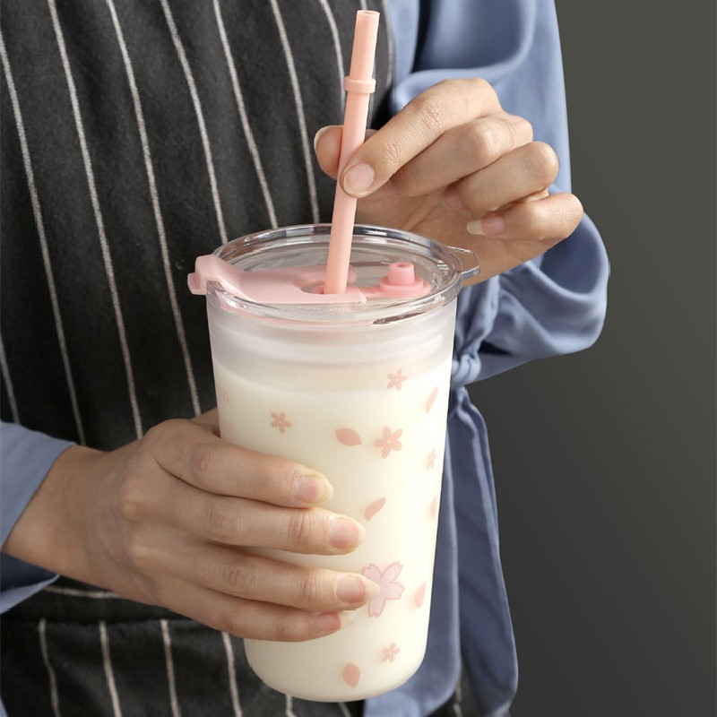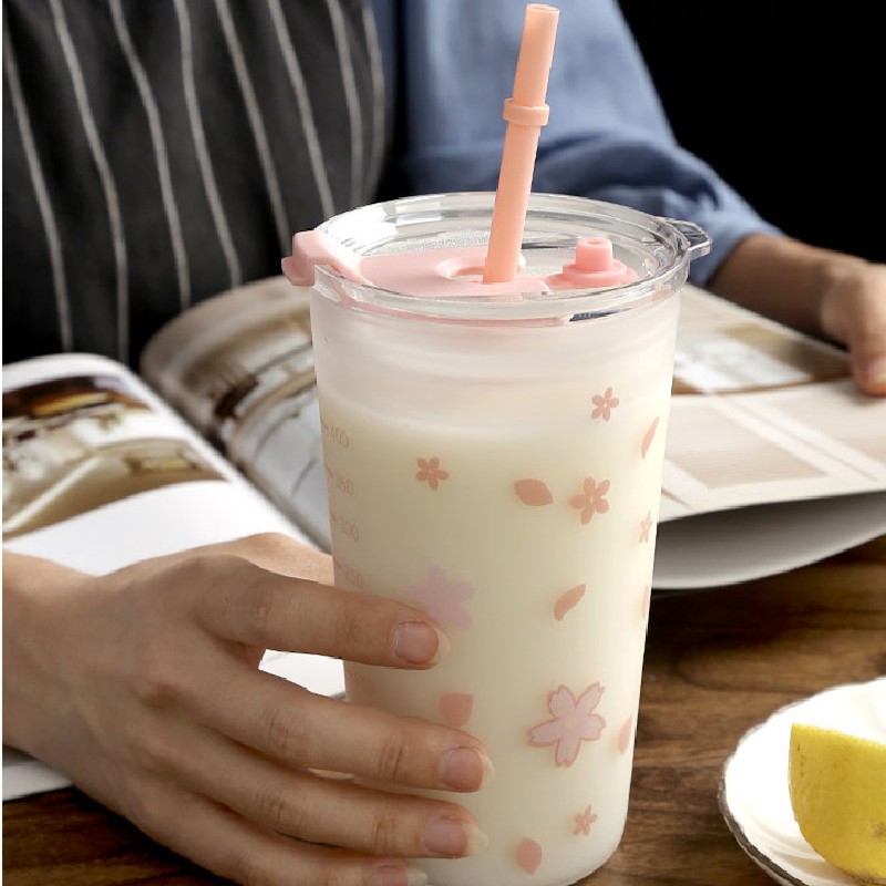 Glass Straw Cup High Face Value Girl Coffee Cup Sub high temperature resistant milk tea Beverage cup Large capacity Drink cup Home