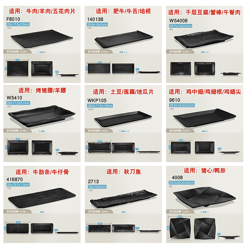 Roast Meat Shop Special Disc Melamine Plastic Black Creative Special-style Barbecue Tableware Commercial Plate Dishes