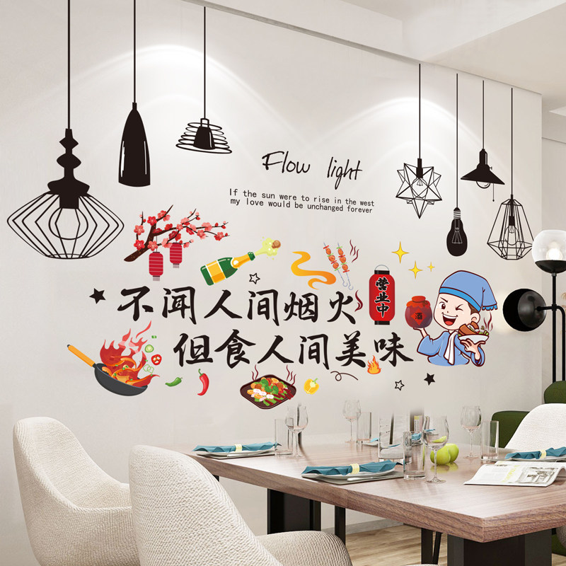 Wallpaper self-adhesive commercial catering net red snack barbecue hot pot restaurant restaurant creative wall decoration background sticker paper