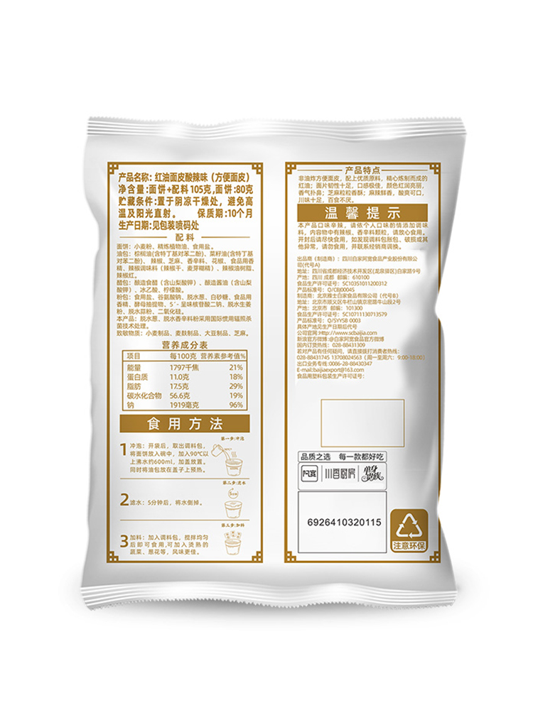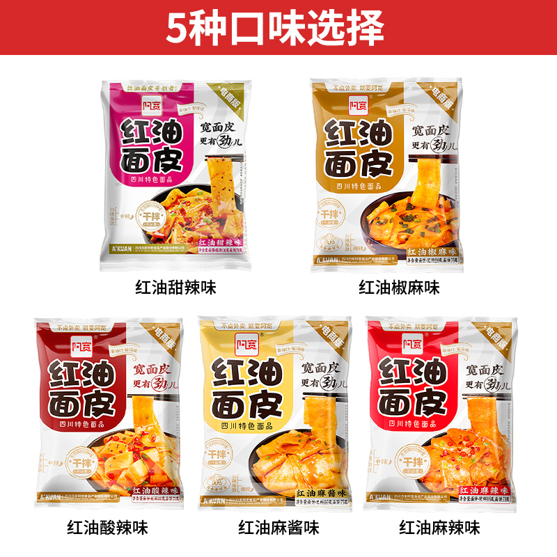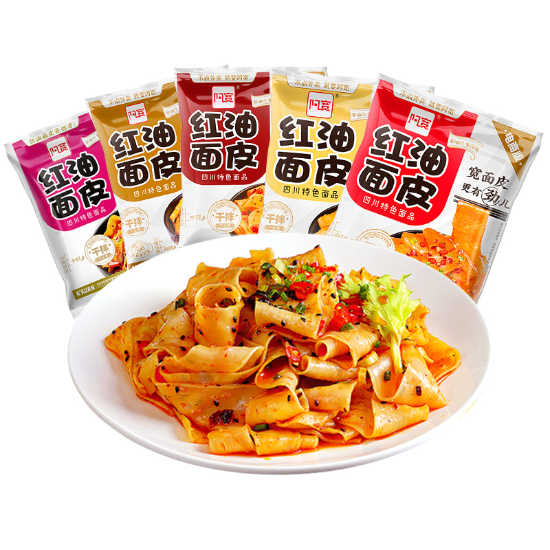 Akuan Red Oil Noodles FCL Flagship Store Bags Cold Skin Instant Noodles Dry Mixed Noodles Lazy No-Boiled Instant Noodles Mixed Noodles