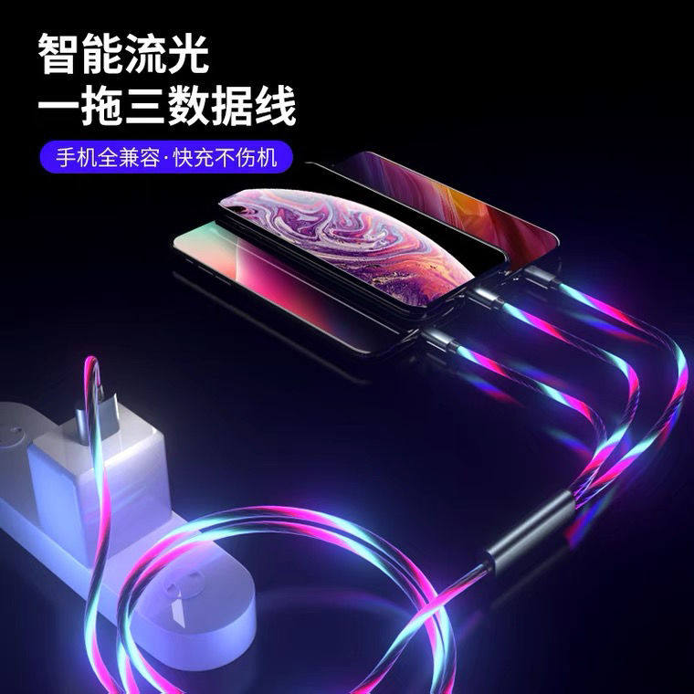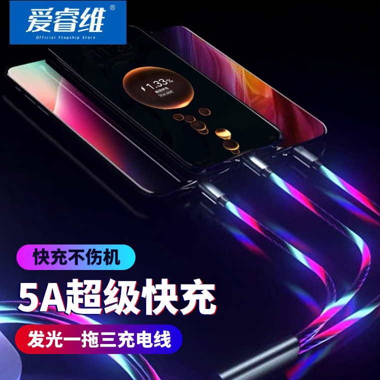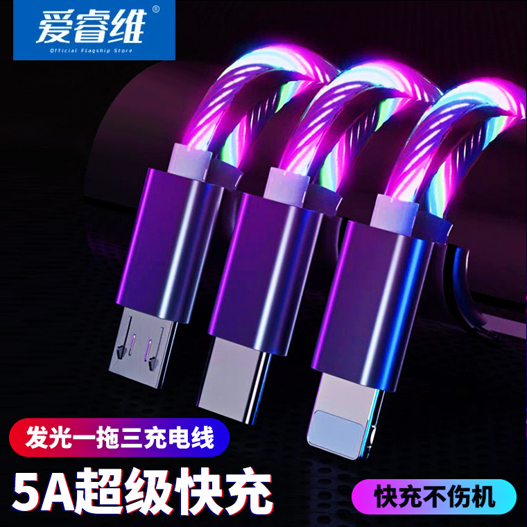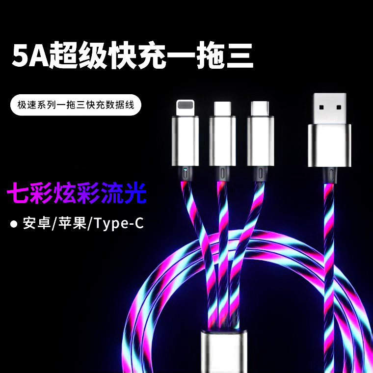 5A data cable three-in-one first-class light Android charging cable one drag three suitable for Huawei glory super fast charge Apple OP