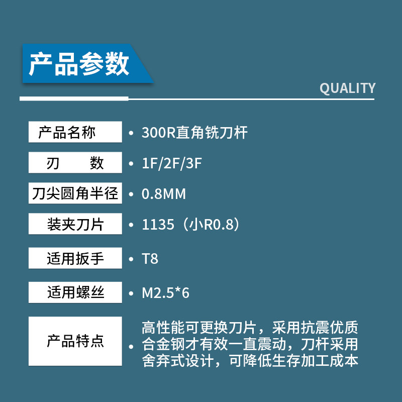 Ozo CNC CNC milling cutter rod 1135 anti-seismic lengthened end mill 300R0 8 open thick right-angle blade flying knife rod