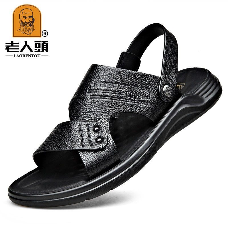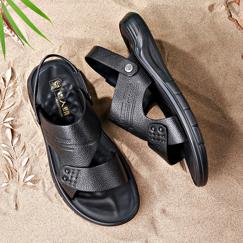 Old man's head men's casual beach shoes dual-use outer sandals men's leather 2022 summer new dad sandals and slippers