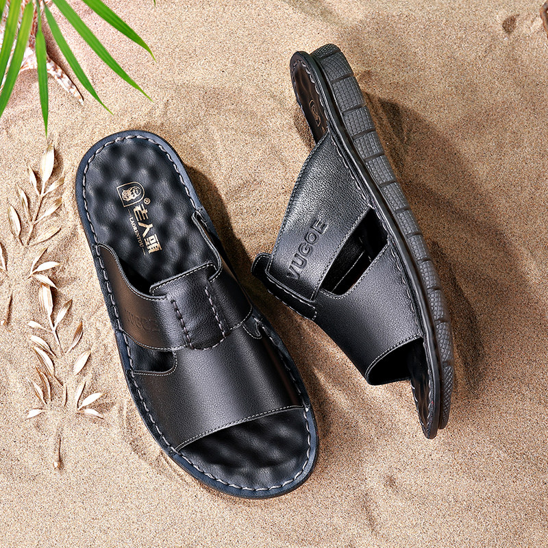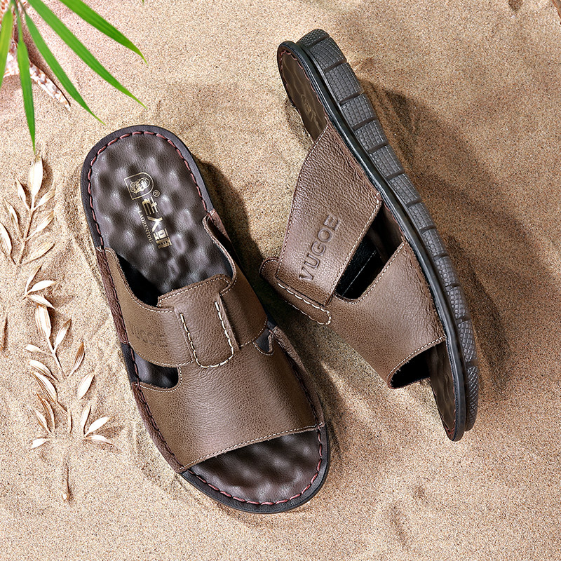 Old man's head 2022 Summer men's new casual fashion slippers men's non-slip thick bottom genuine leather beach shoes Outdoor
