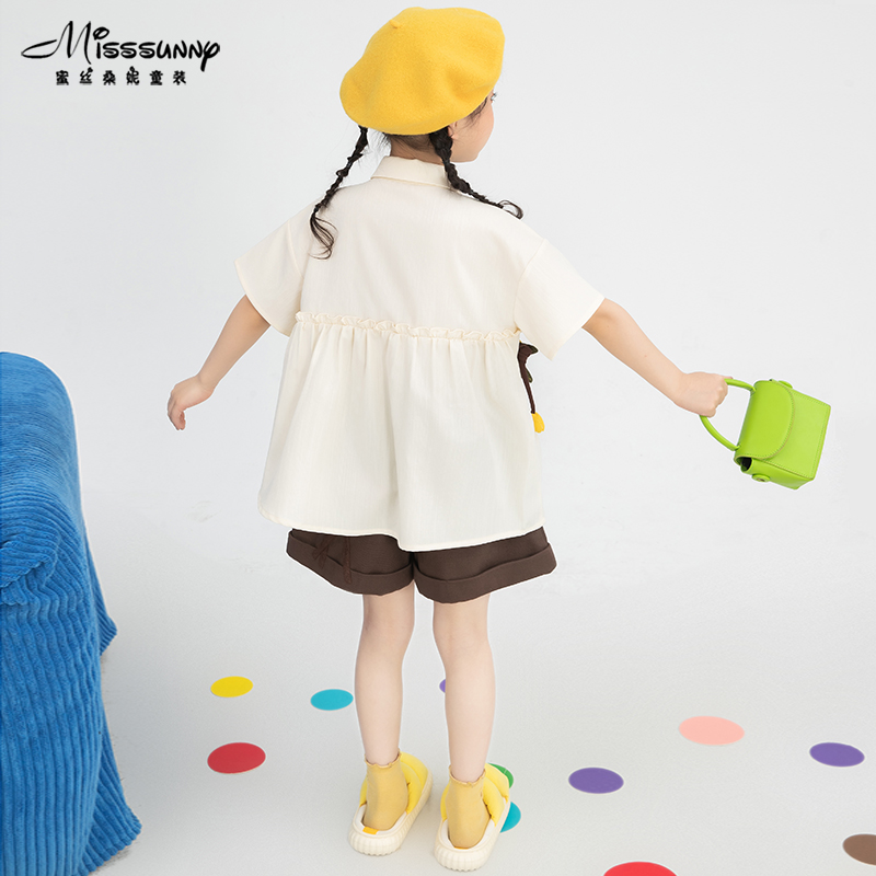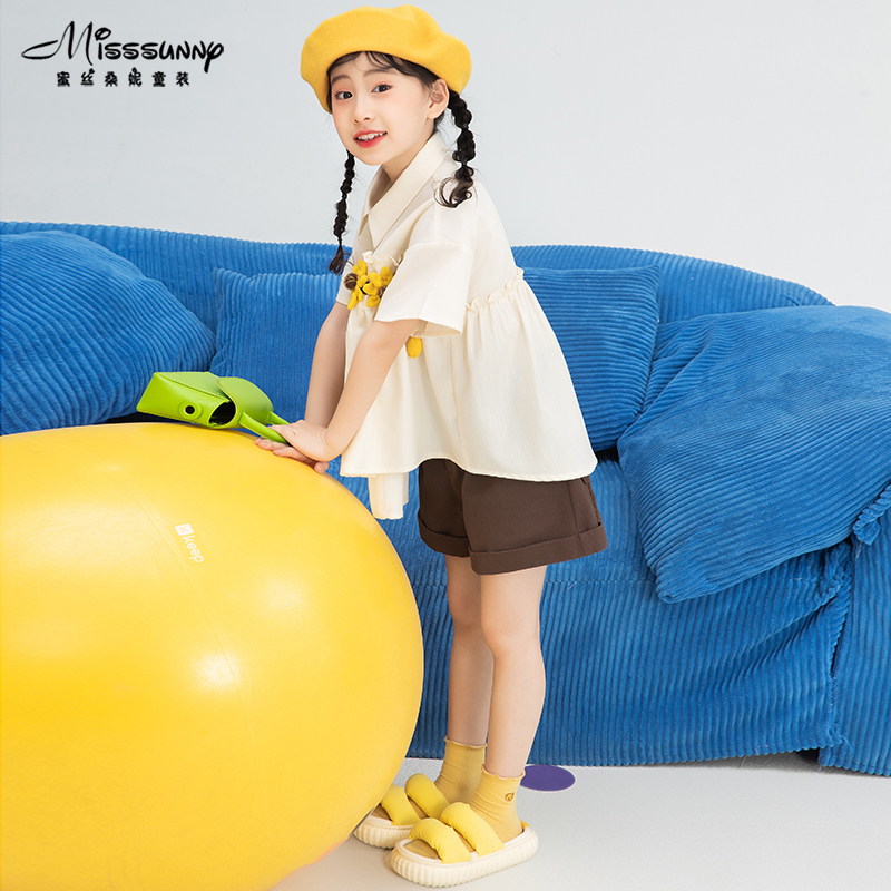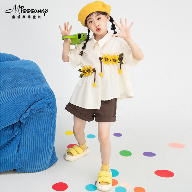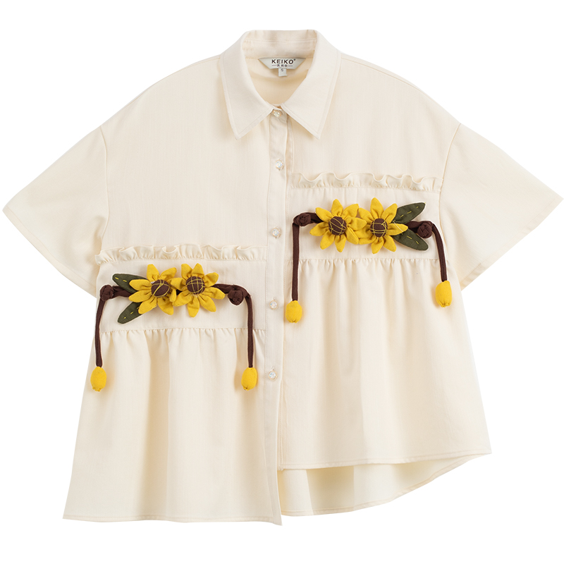 A beige shirt girl new 2023 summer daisies falsified design leisure half - sleeved sweater
