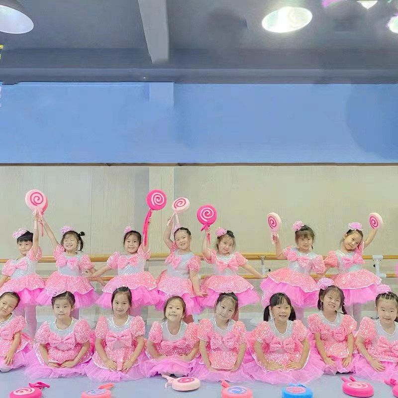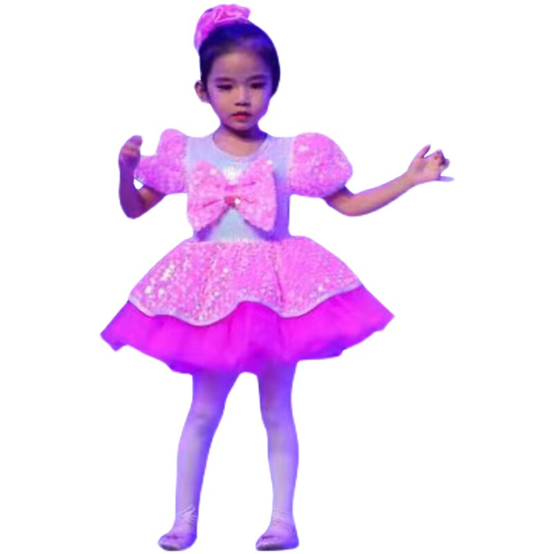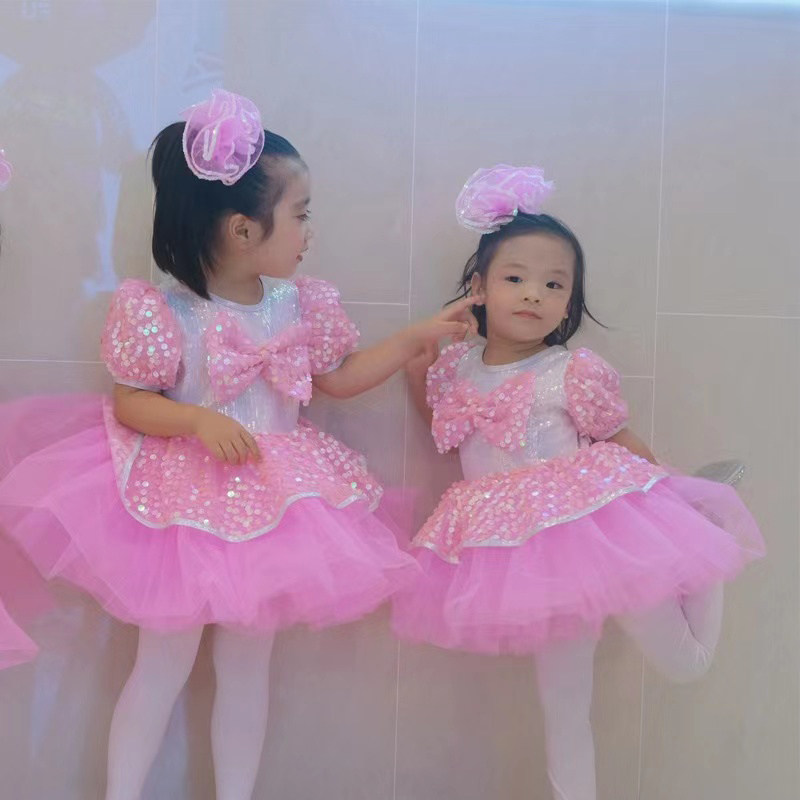 Children's Children's Performance Costumes Girls Petit Skirt Kindergarten Dance New Cute Pink Sequined Gauze Dress Performance Costumes