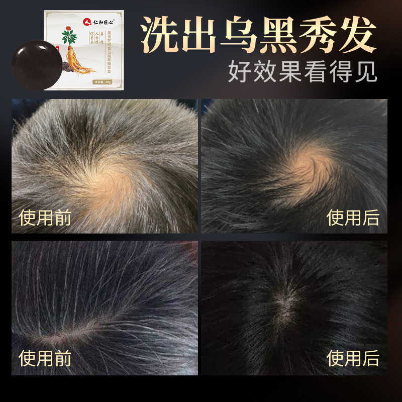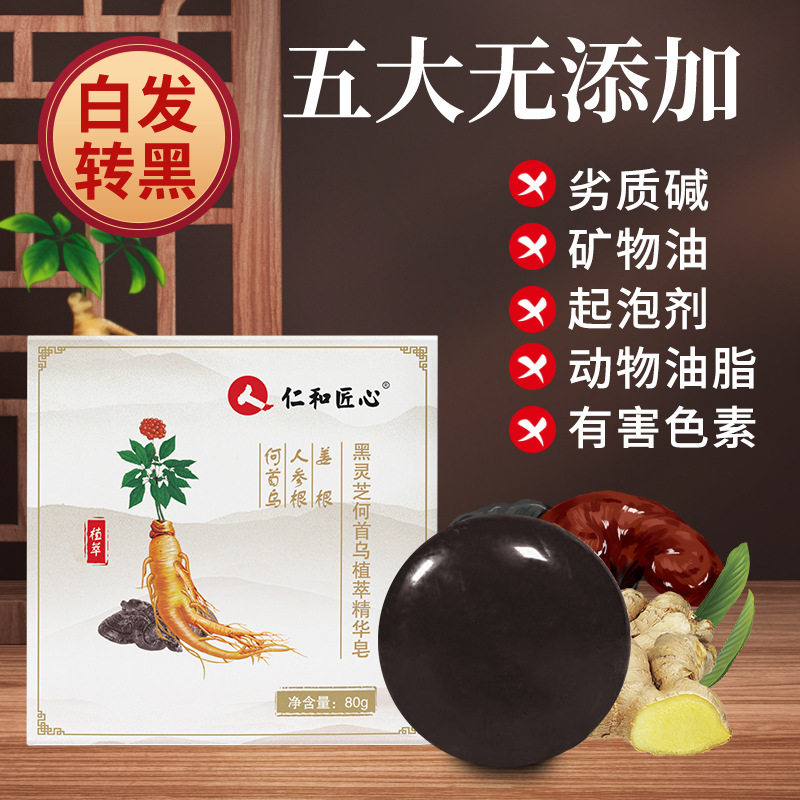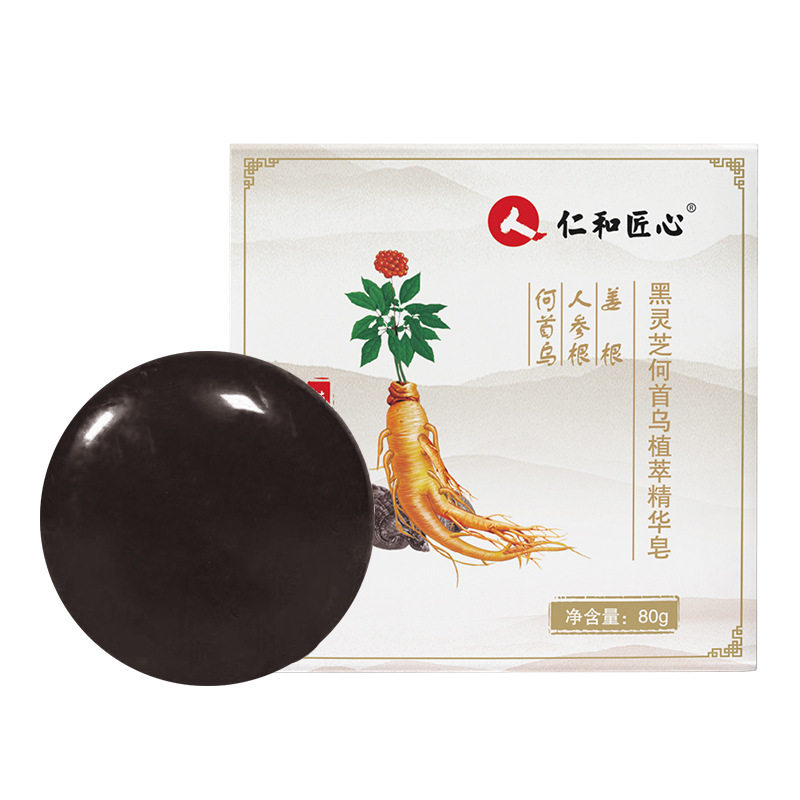 Renhe ingenuity black Ganoderma lucidum fleece-flower root ginseng plant extract essence soap natural handmade shampoo black hair nourishing soap
