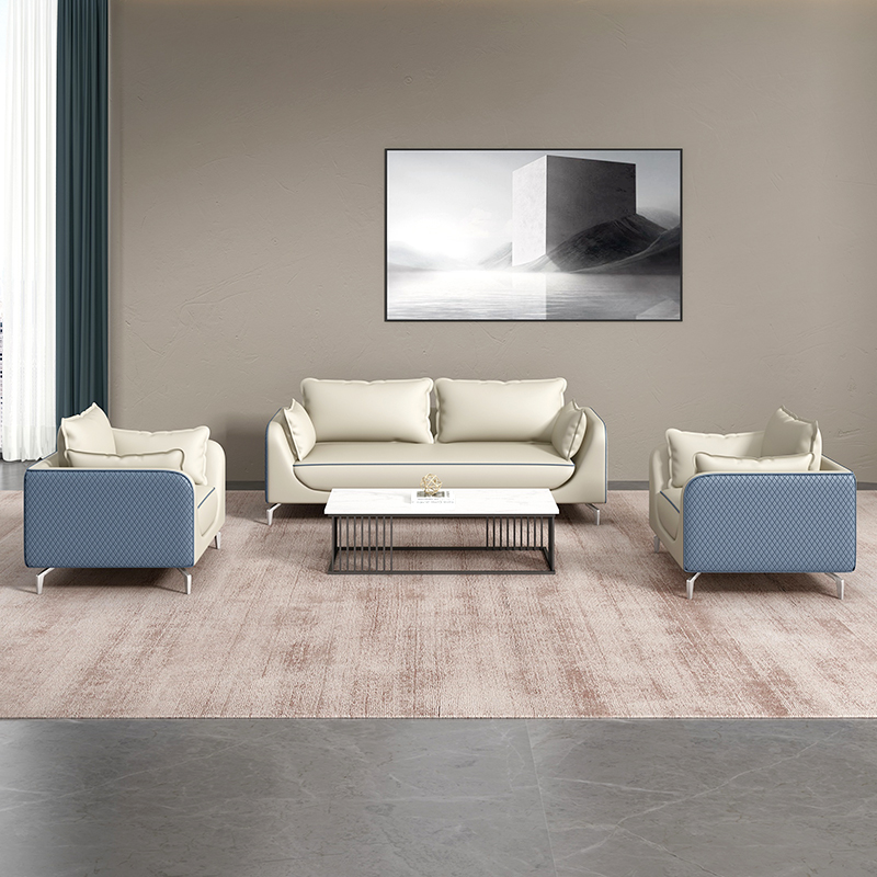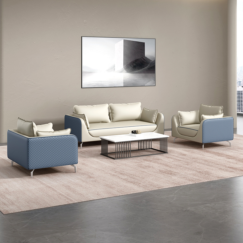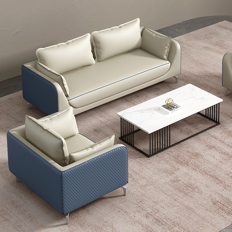Office Brief Sofa Blue Imitation Leather Modern Fashion Sofa Rock Board Tea Table Combined Leisure Business Talks