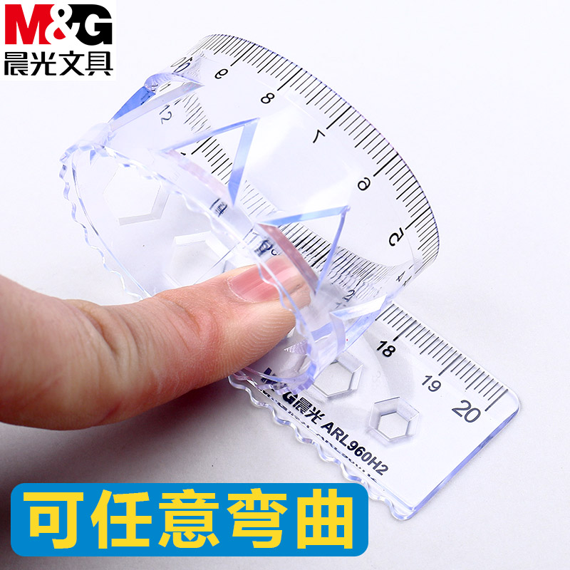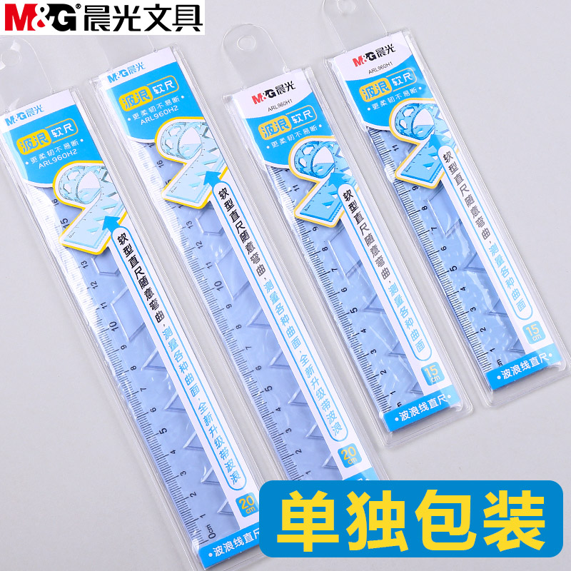 Chenguang primary school students soft ruler with wavy line ruler 15cm 20cm transparent set ruler children's plastic ruler ins