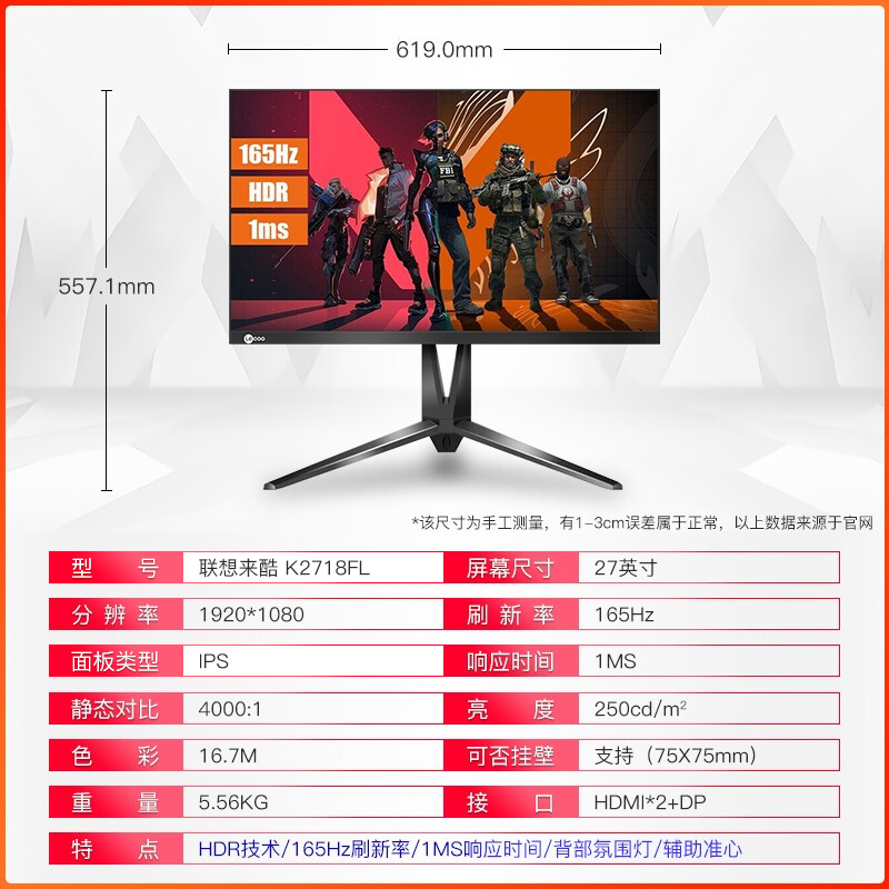 Lenovo cool Lecoo 27-inch 2K 165Hz display full HD IPS panel K2718FL