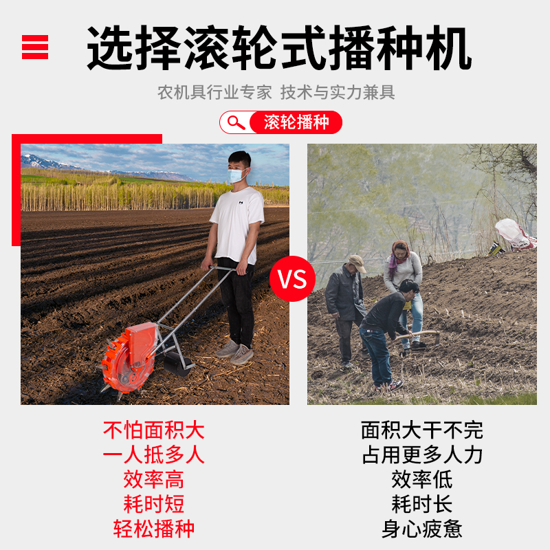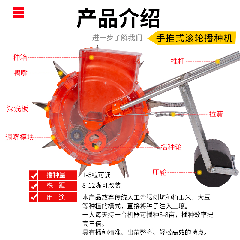 Hand-pressure seeding machine simple and practical hand-pressure sowing fertilizer "Fertilizer" single mouth strain distance of 33 cm single mouth strain from 27 cm single mouth strain of seven mouth strain of the single mouth distance of 23 cm single mouth strain of the distance of 23 cm single mouth