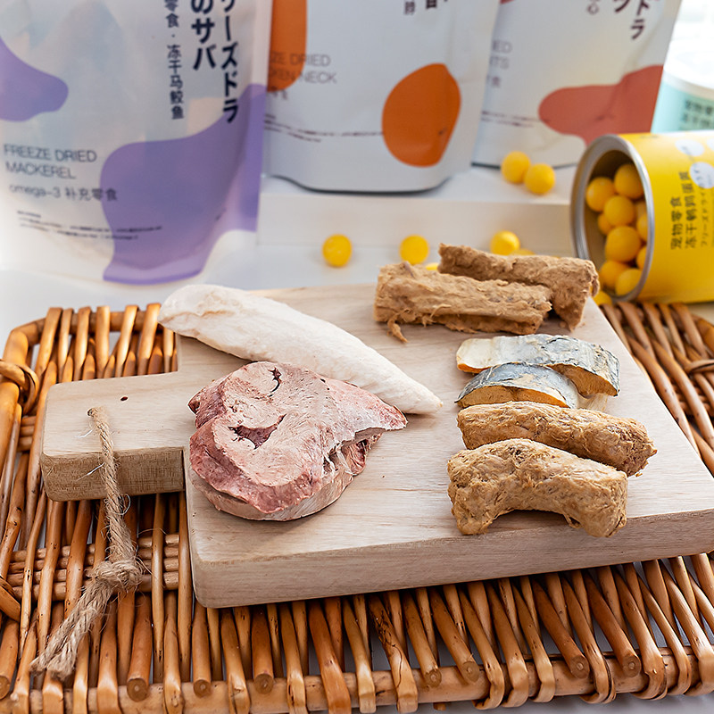 Freeze-dry rabbit keel (dog and cat) 50g freeze-dry rabbit flesh wing (dog cat) 60g duck small chest (dog and cat) 70g pig (dog and cat) 70g freeze-dry horse-dry fish (dog and cat)