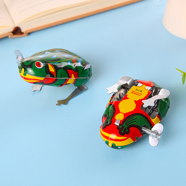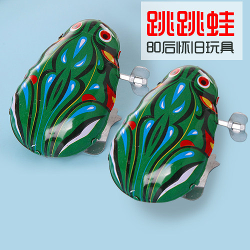 The Nostalgia Frog Toy Jumping Frog's Jumping Sheet Iron Sheet Bounce Green Leather Animals Upper Chain Clockwork Kids Small Upper Strings-Taobao