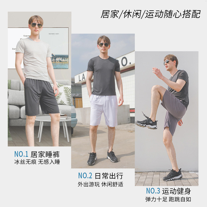 Ice silk shorts men's summer thin sports loose elastic large size casual pajamas quick-drying five-point air-conditioned casual shorts