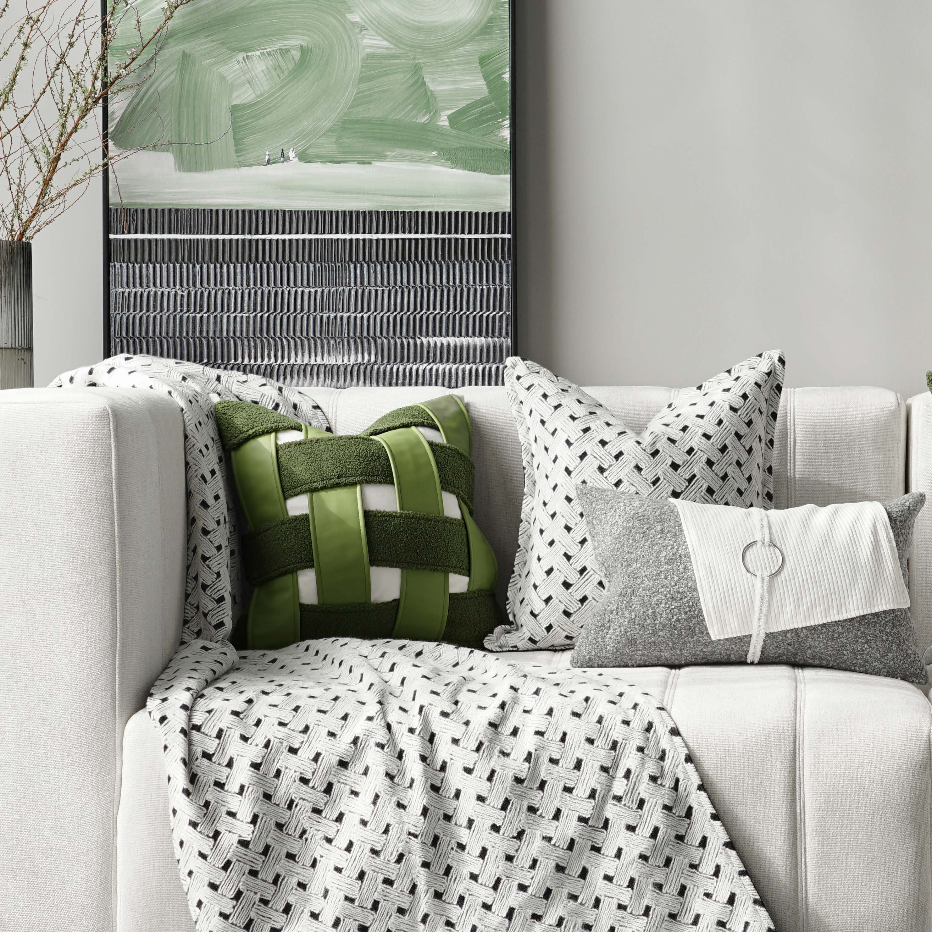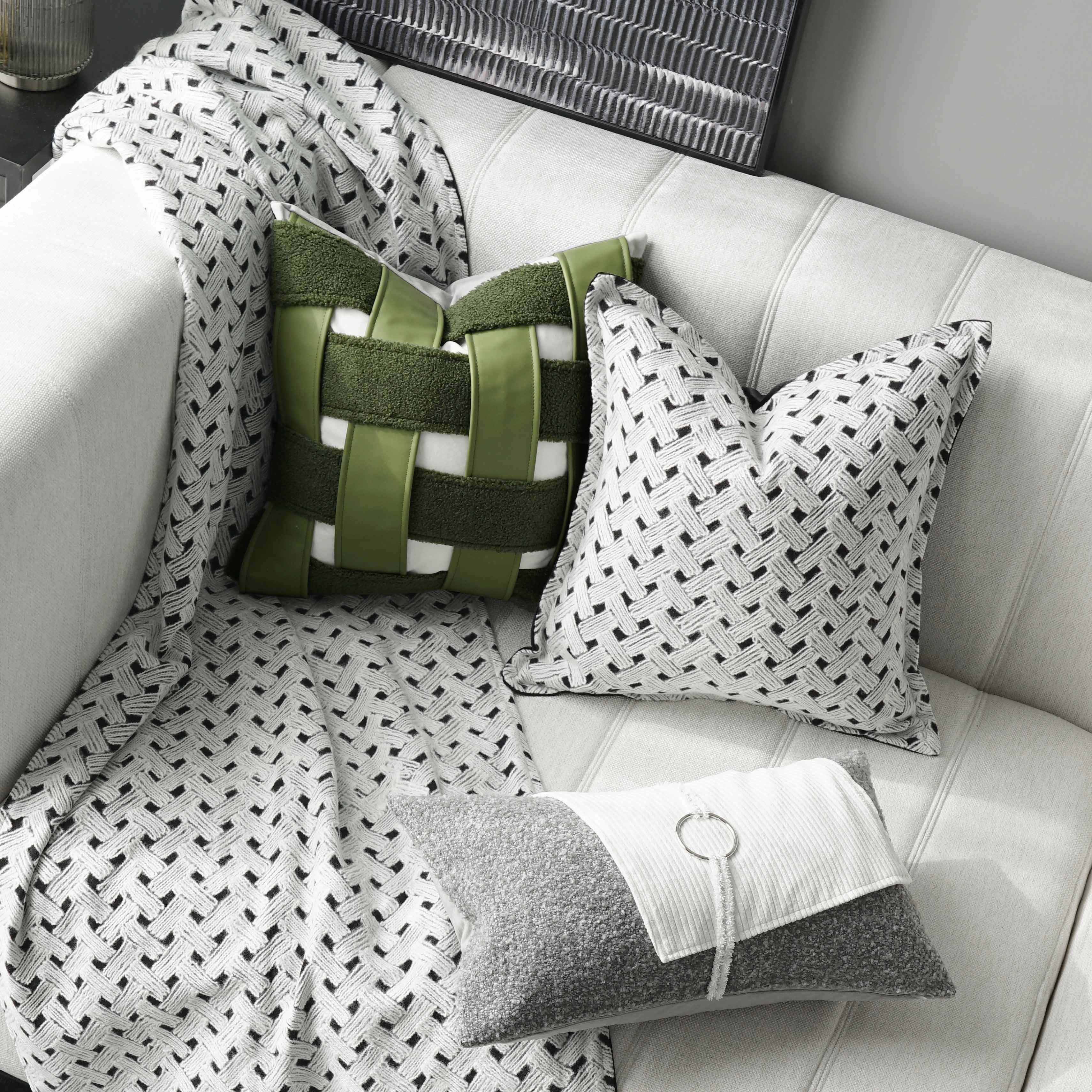 Original modern pastoral green grid living room sofa pillow cushion model room cushion car club bag