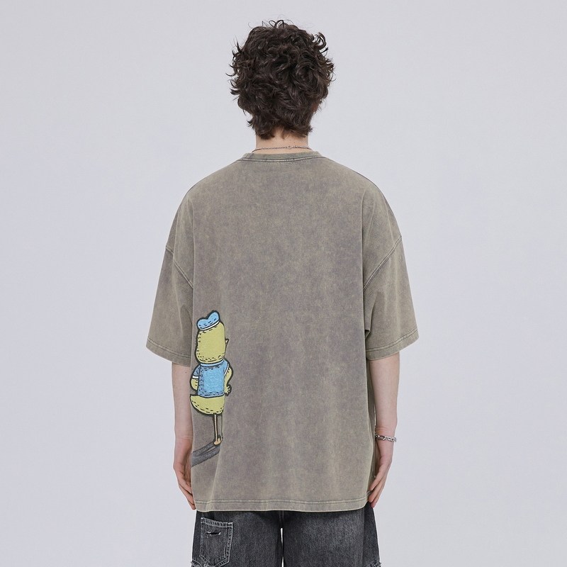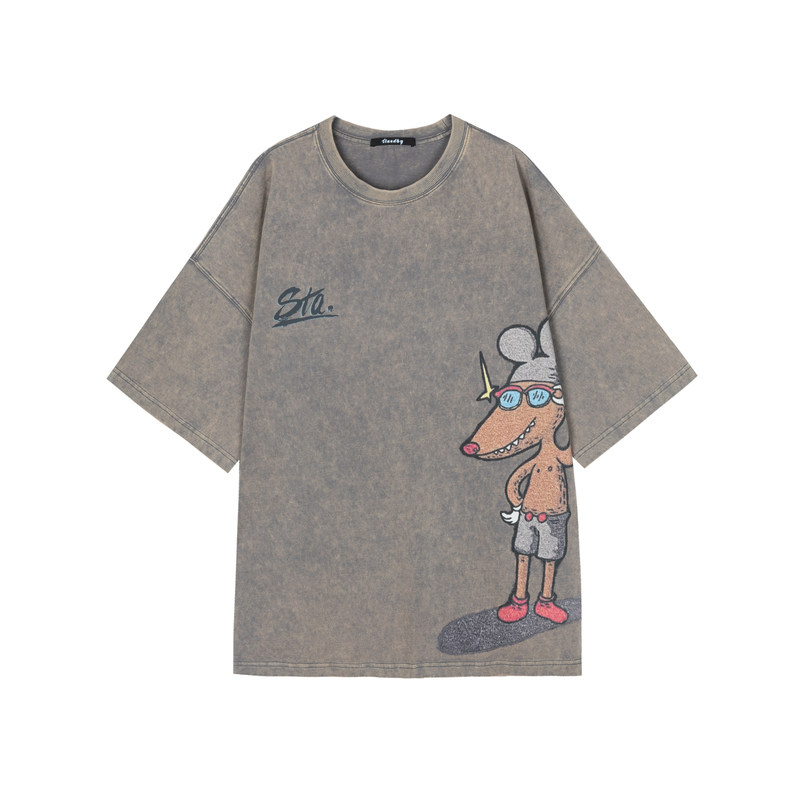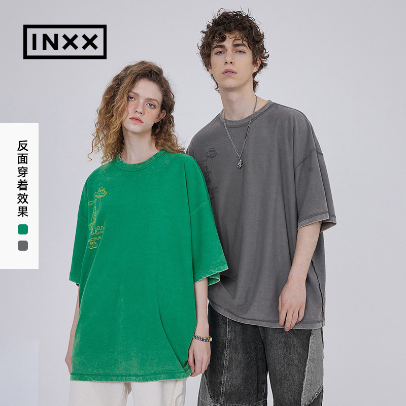 (INXX) STAND BY North Sea Monster joint double-sided short-sleeved T-shirt mottled print loose round neck tide t