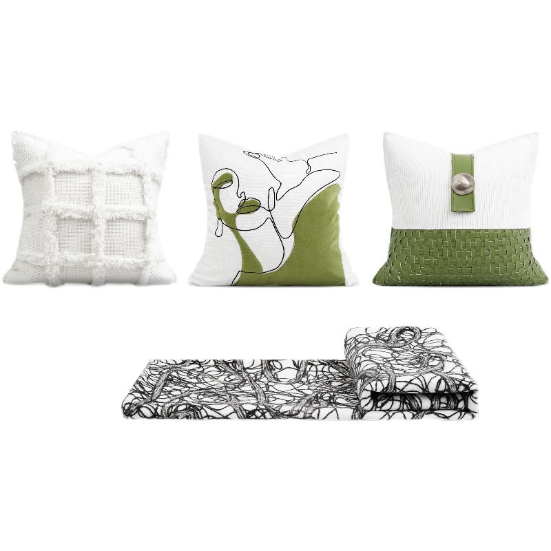 Modern light luxury abstract element green living room sofa pillow cushion model room cushion car club support bag