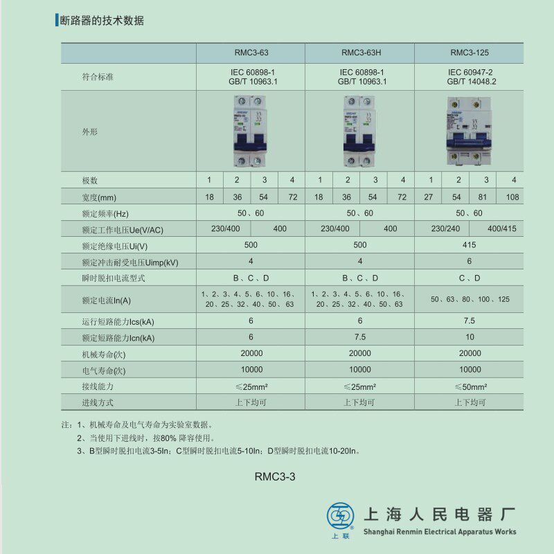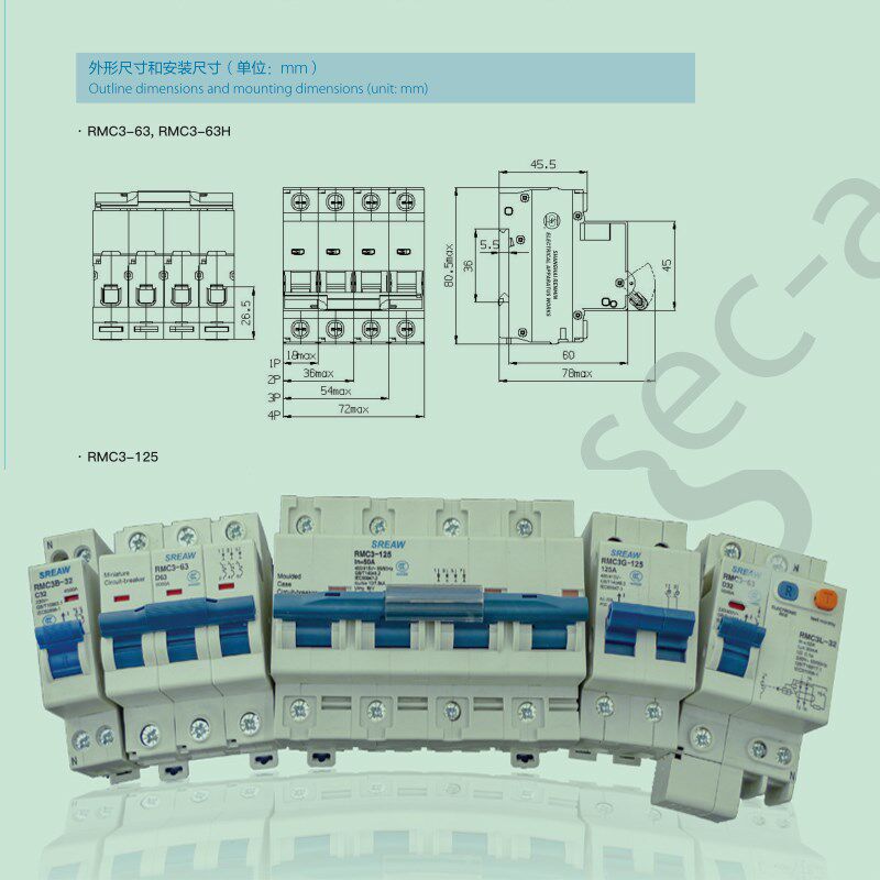SREAW Shanghai People's Electric Factory RMC3-63 3PC type 63A brand air switch