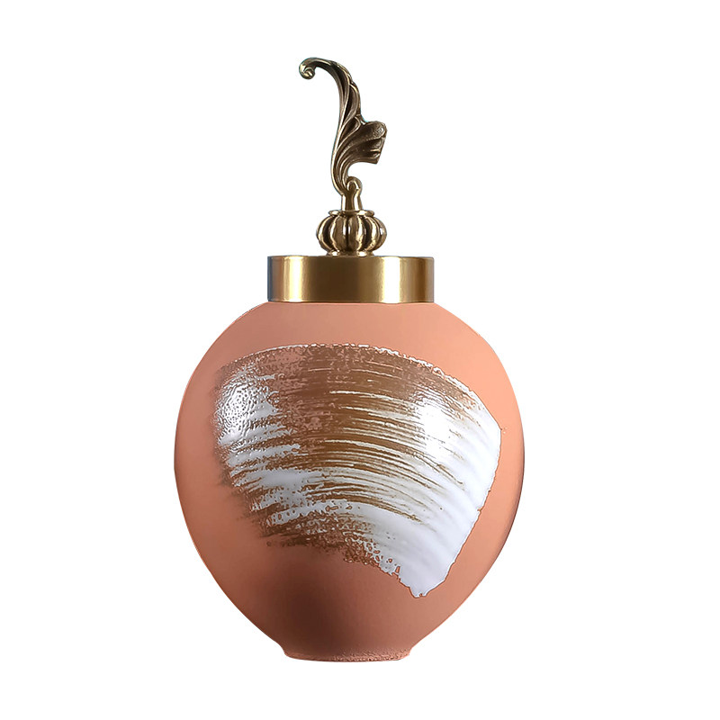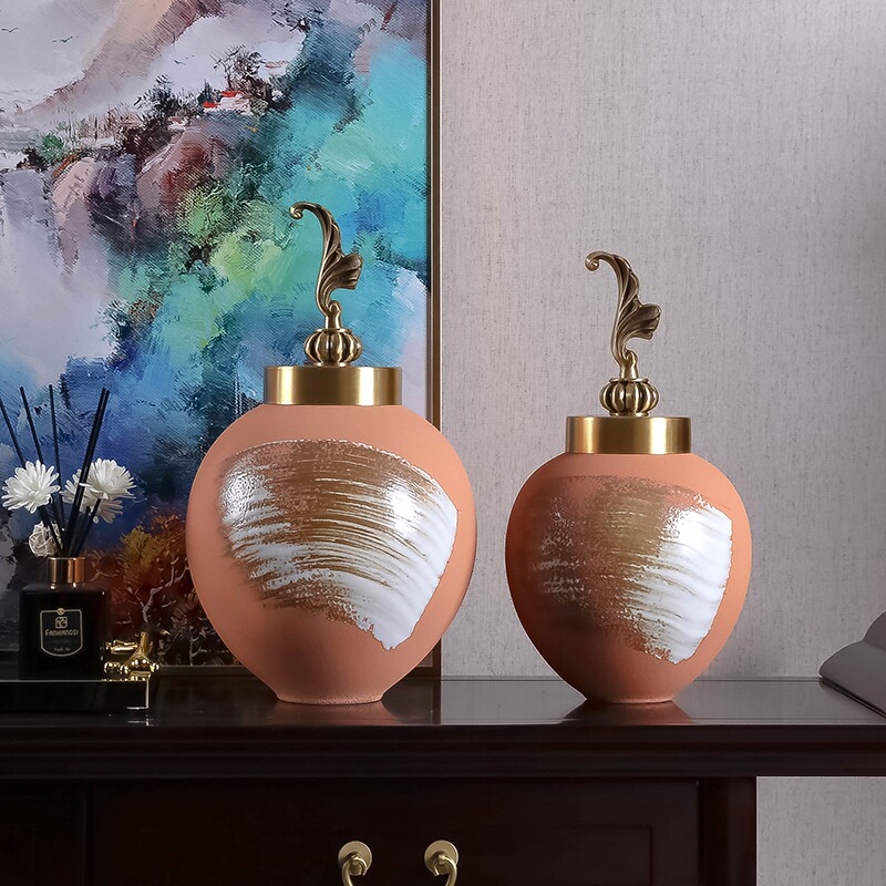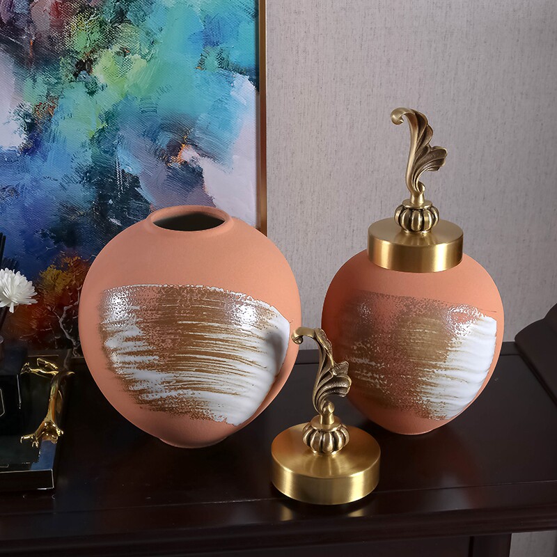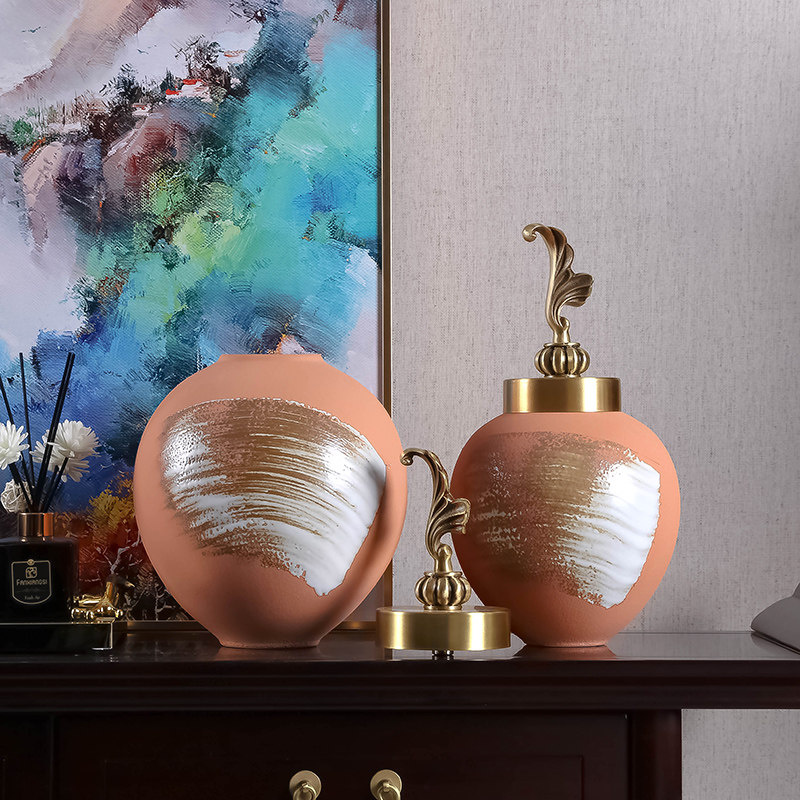 New Chinese Retro-View Ceramic Vase Fittings All-copper Cover Zen Handdrawn Creative Living Room