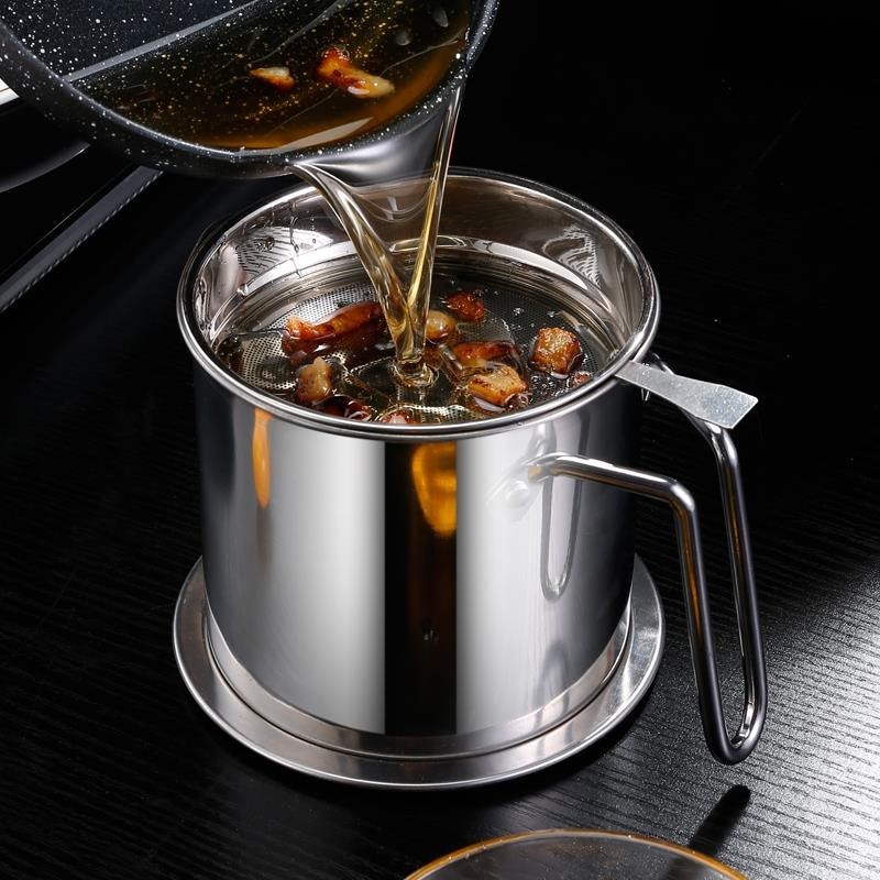 Stainless steel oil barrel edible oil high temperature resistant 304 oil pot oil spill large number kitchen with oil filter oil storage net-Taobao