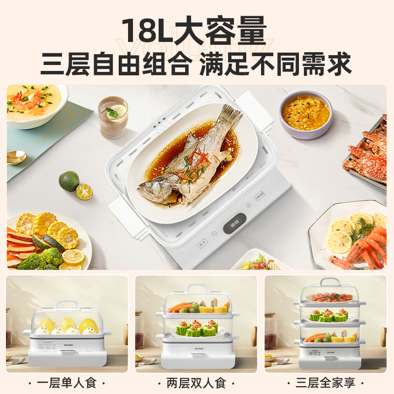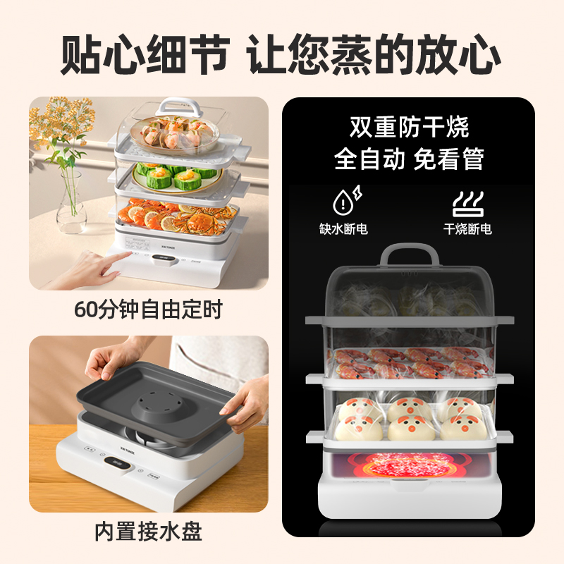 Skyline Electric steamer multifunction Home Large capacity Three layers Small electric steam box Breakfast Steamed Vegetables Electric Steam Cage
