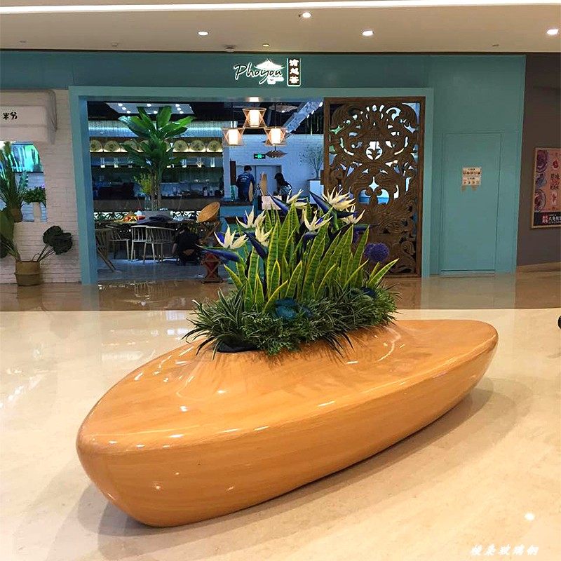 FRP custom flowerpot stool outdoor mall art airport seating area triangle multi-person leisure waiting chair