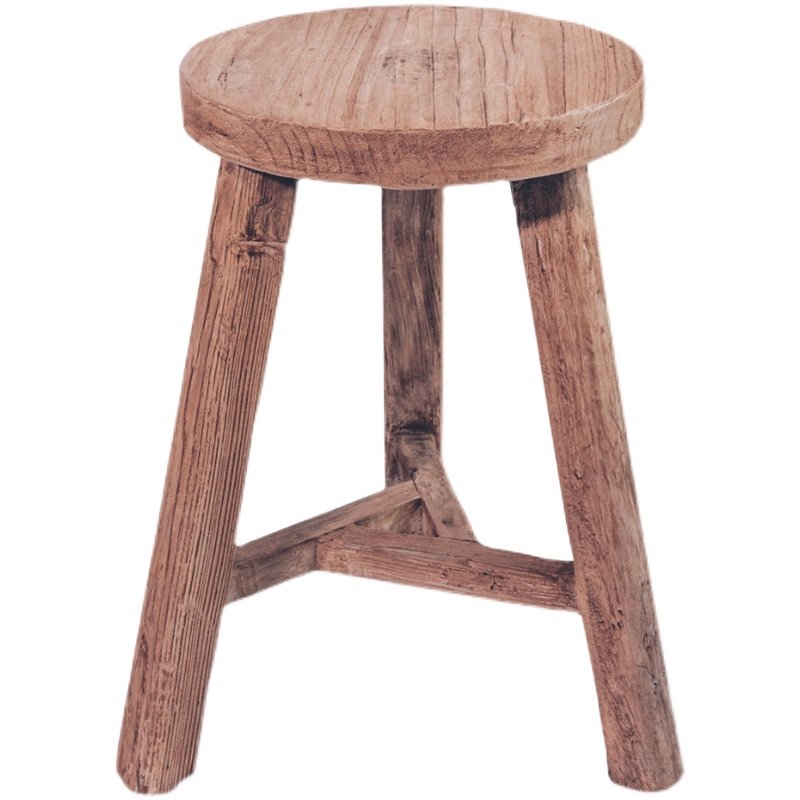 Log mortise and tenon wabi wind low stool old house wood solid wood round stool old elm door panel furniture B&B hotel