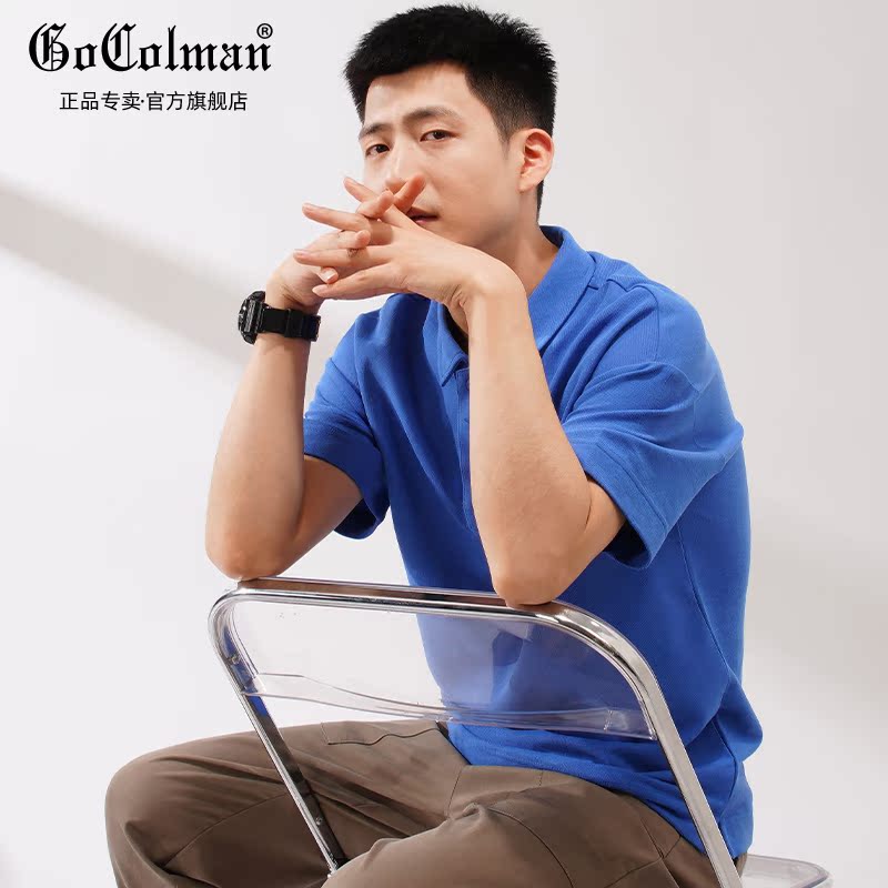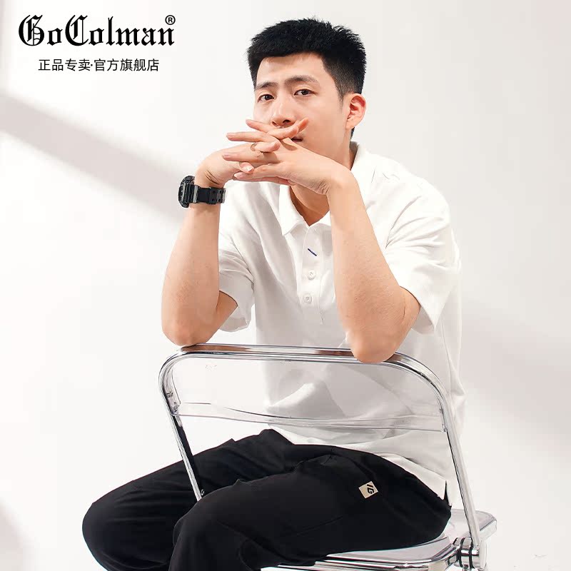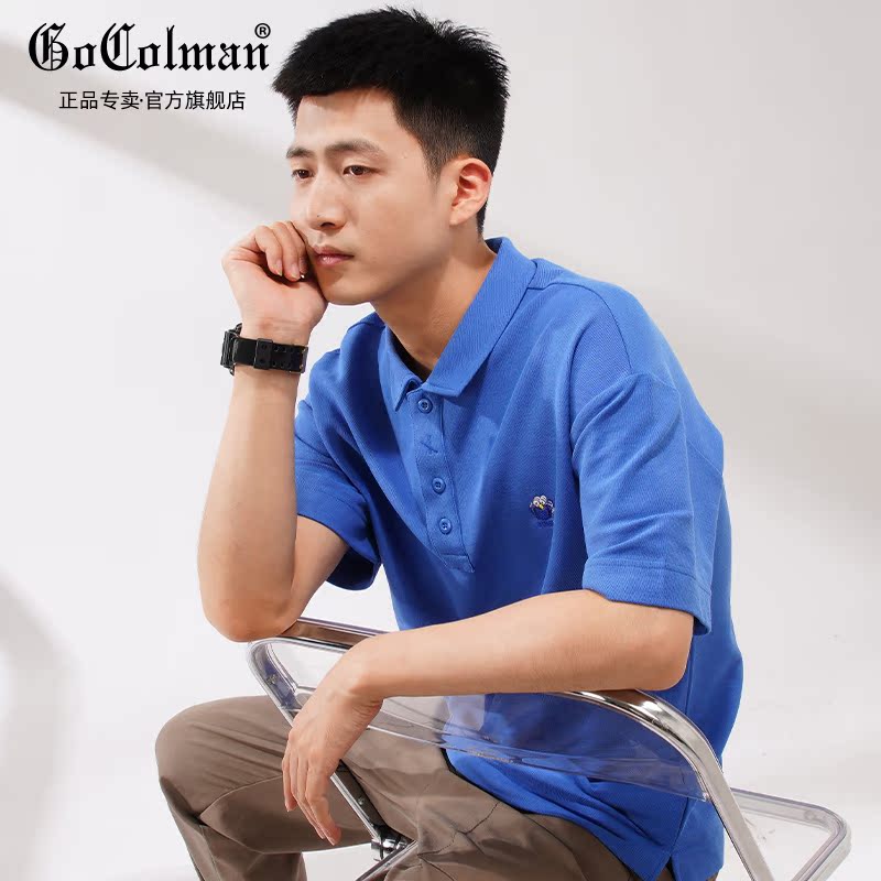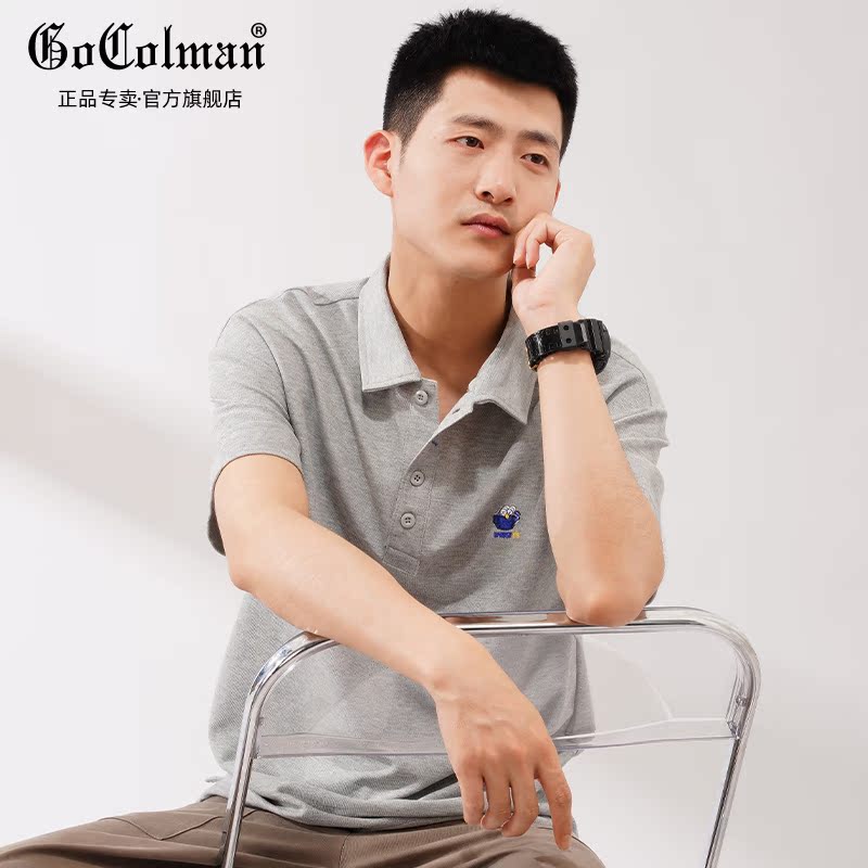 GoColman summer new POLO shirt men's tide brand cartoon embroidery ice oxygen bar thin section solid color all-match short-sleeved tide