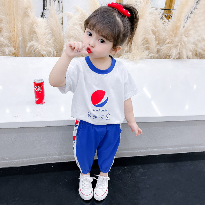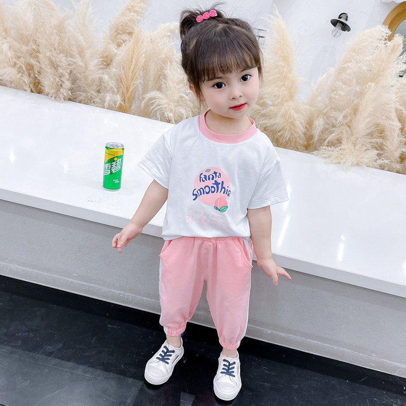Girl suit 2023 new Summer Ocean Gas Thin BABY SMALL CHILDREN TRENDY PURE COTTON T-SHIRT SHORTS TWO SETS-TAOBAO