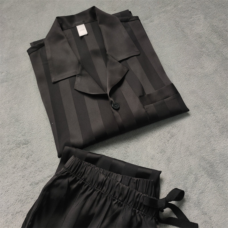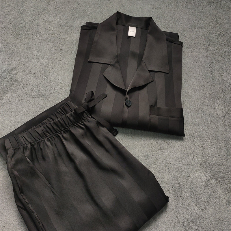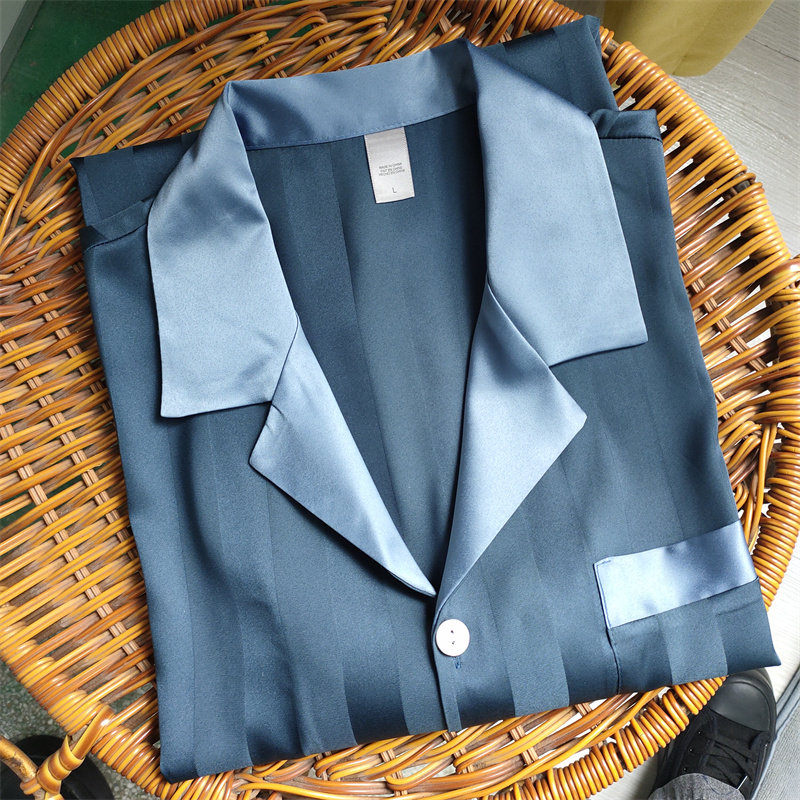 Hu Ge's new high-end blue striped silk slip pajamas men's autumn ice silk long-sleeved trousers thin suit