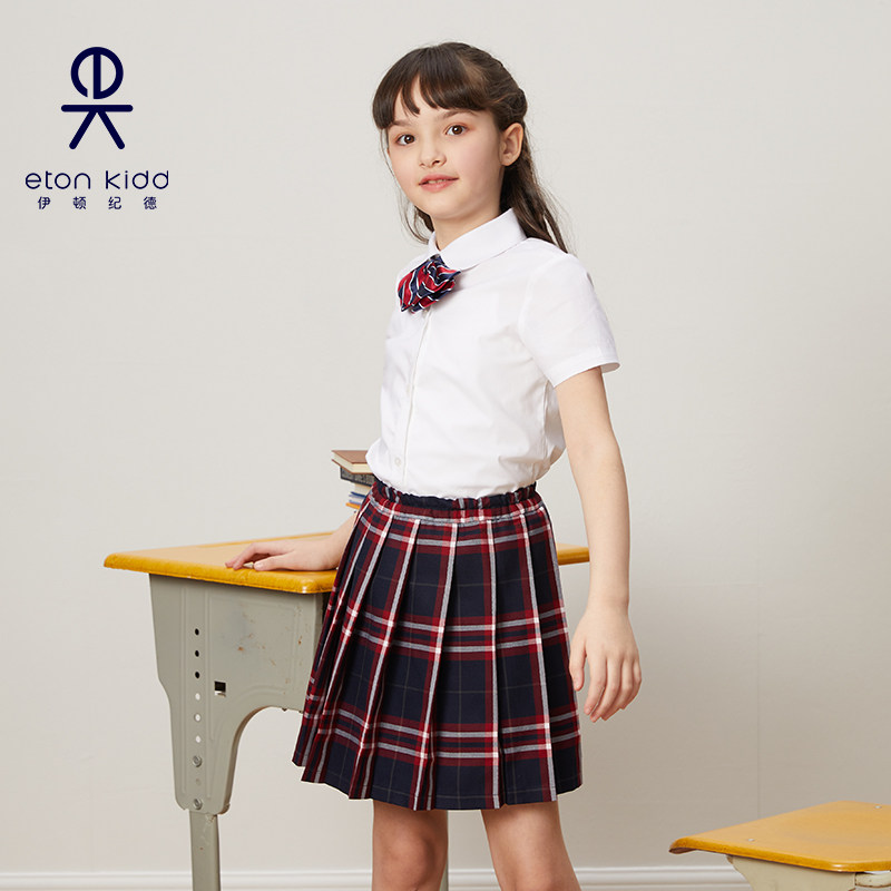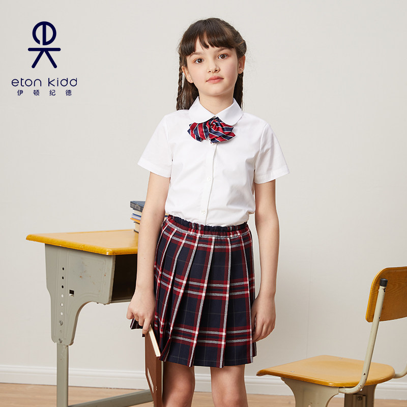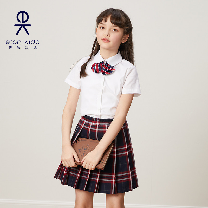 (two 5-fold) Children's College Classic White Lining School Students Summer Girl Short Sleeve School Uniform 22C903