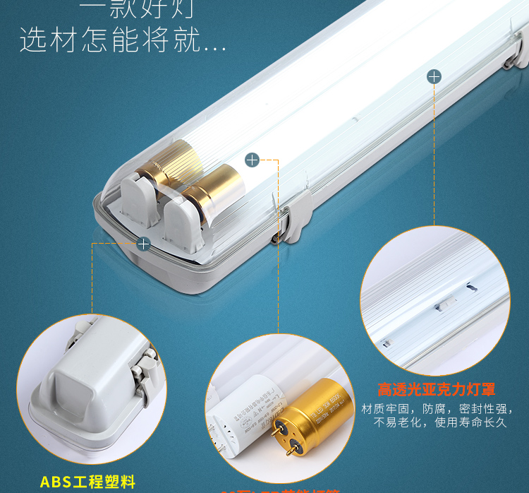 T8 tri-proof lamp full set of fluorescent lamp bracket fire emergency fluorescent lamp rack explosion-proof dust-proof lamp double tube light source lamp