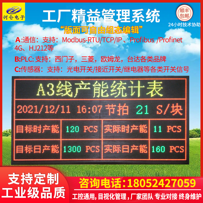 Customized PLC communication screen modbusTCP RTU485 workshop electronic billboard outdoor LED environmental monitoring billboard